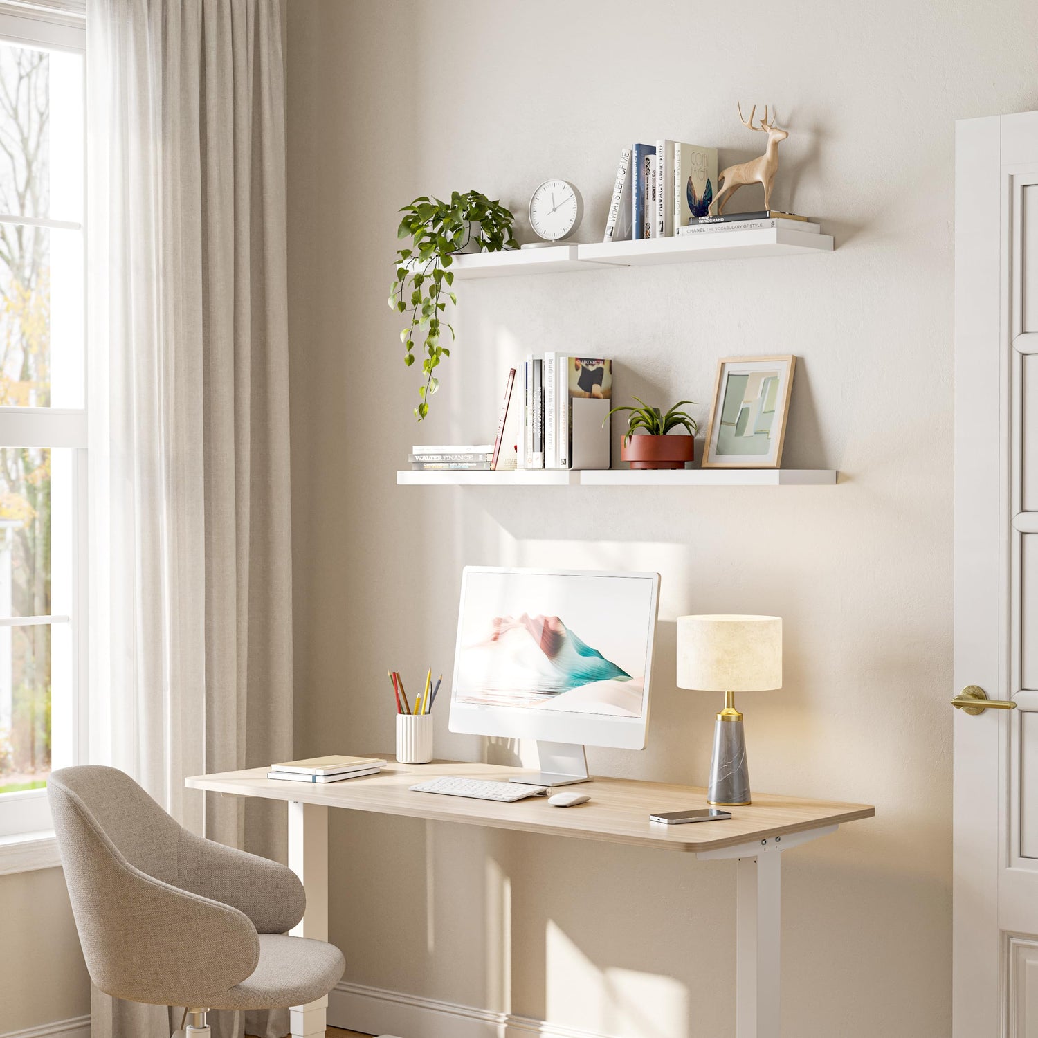 - Sturdy Construction--Made from high-quality MDF wood, these wall shelves are built to last. The sturdy design ensures that your items will stay securely in place on the shelf.