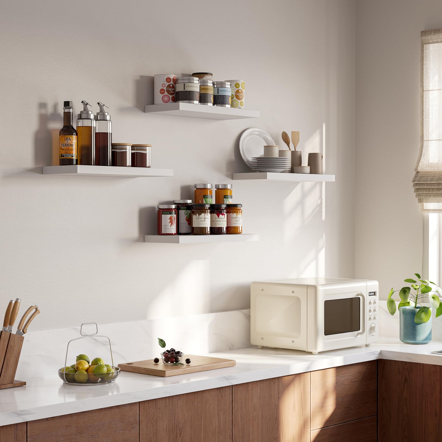 - Space-saving Solution--These wall-mounted shelves are a great way to maximize your storage space. Whether you need extra storage in the bedroom, bathroom, living room, or kitchen, these shelves are the perfect solution.