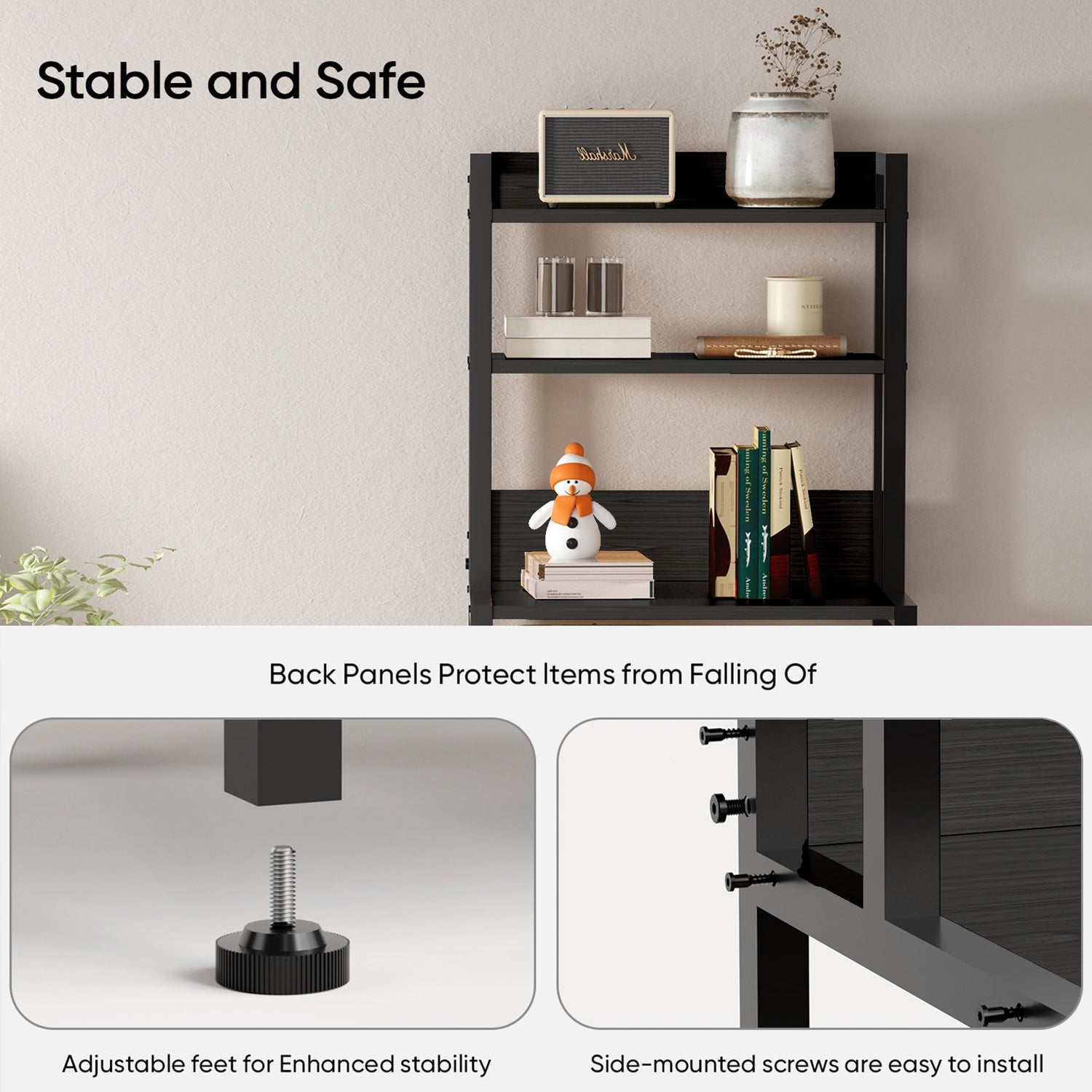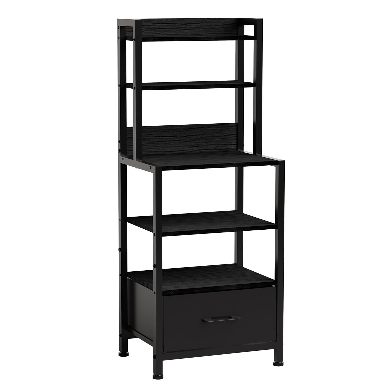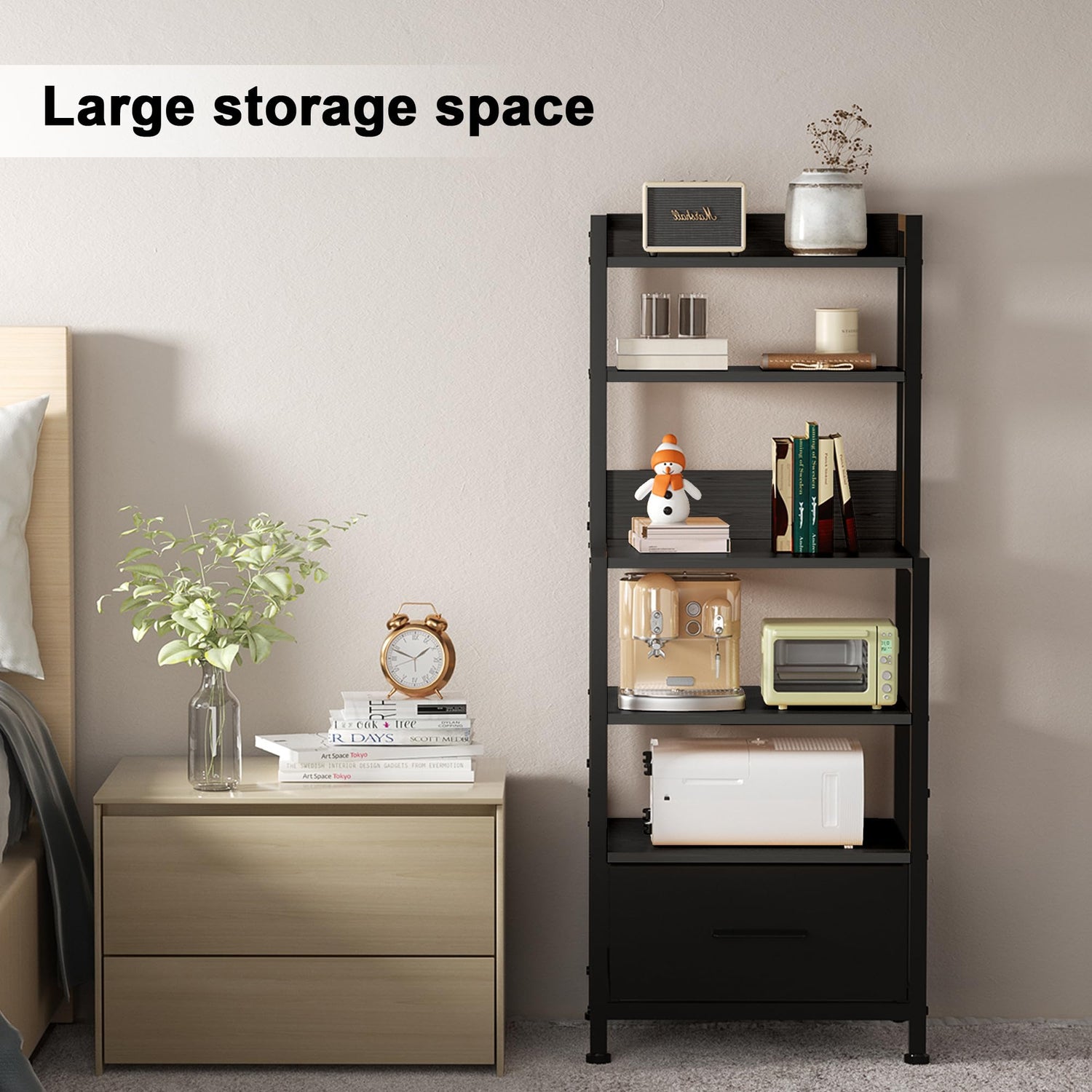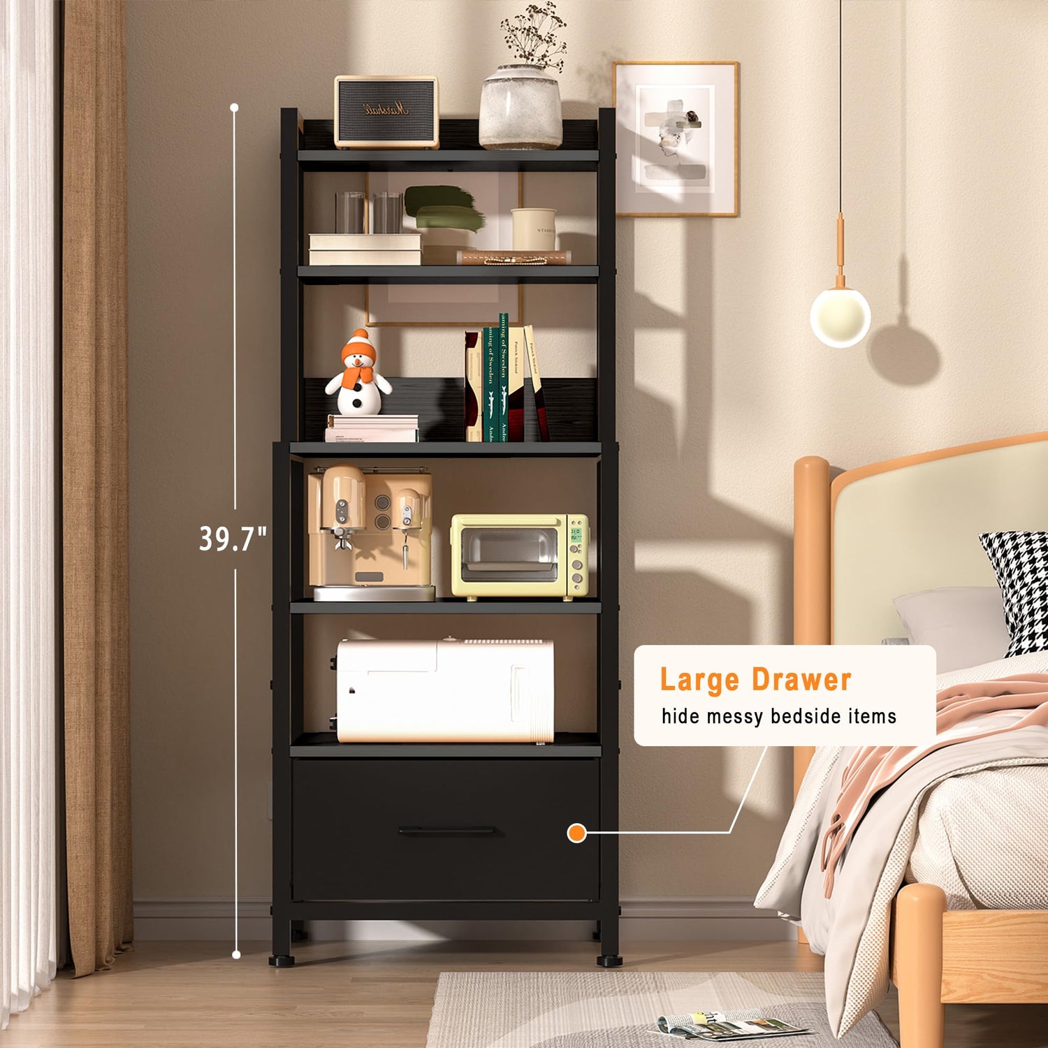 YUJSBHJAN Nightstand with Fabric Drawers,5-Tier End Table for Living Room, Bakers Rack with one Drawer;Storage Cabinets for kicthen,Bedroom,Living Room,Black