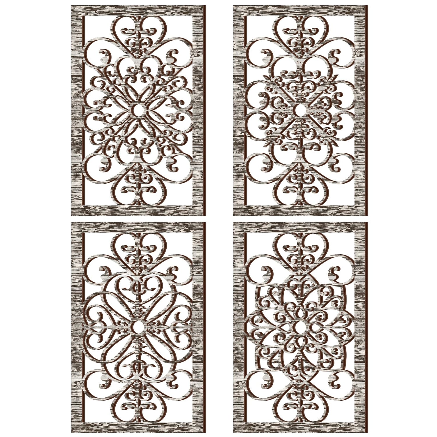 Yulejo 4 Pcs Thicken Rustic Wall Decor Modern Farmhouse Wall Art Decor Wooden Hollow Carved Design Rustic Wall Art for Living Room Hallway Decor Office Kitchen Wall (Gray,15.8 x 9.9 Inch)