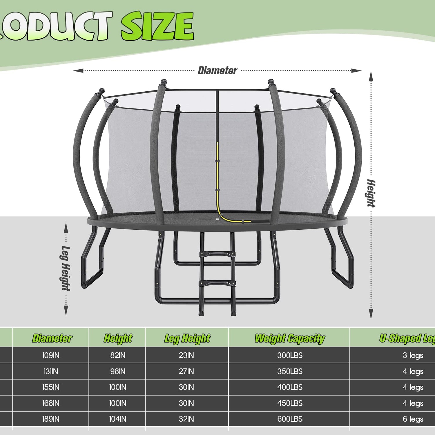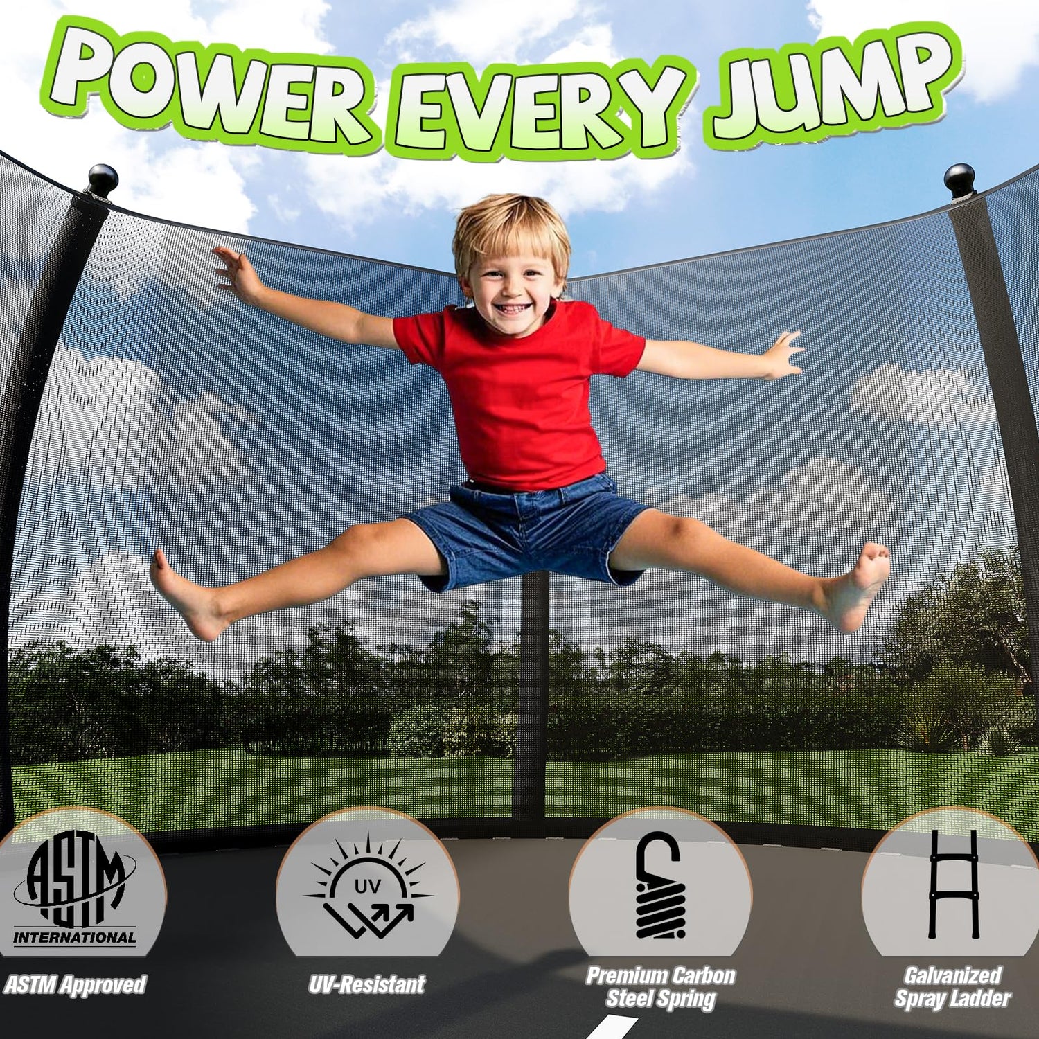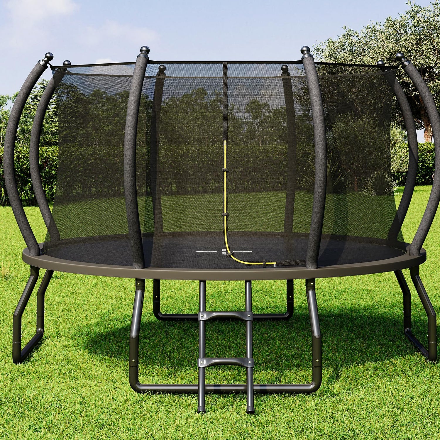 YUMPIE 8FT 10FT 12FT 14FT 16FT Outdoor Trampoline with Enclosure Net and Ladder, Recreational Trampolines for Kids, Pop-up Quick Connect Frame, ASTM Approval