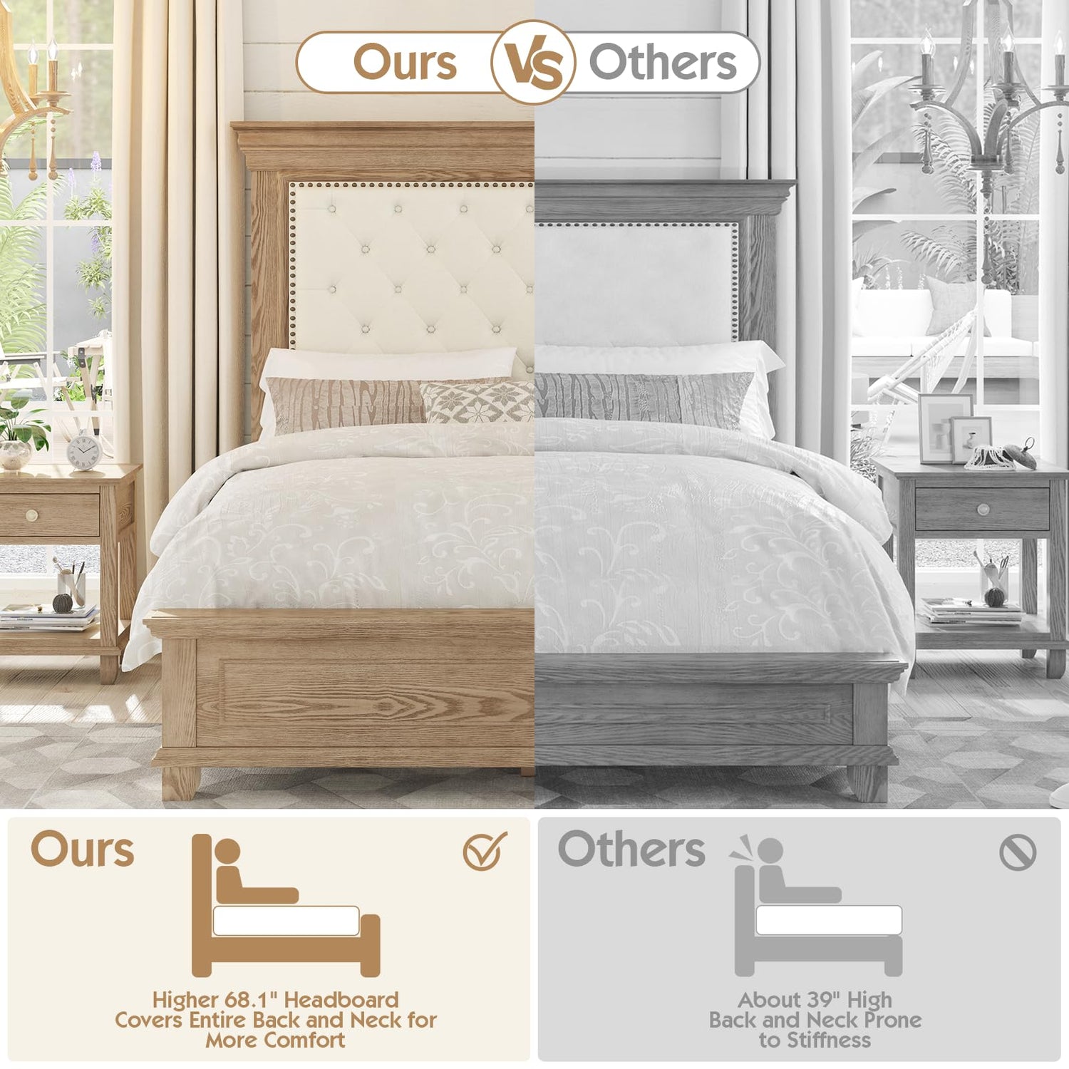 - [68" Tall Deluxe Headboard] Specifically engineered for optimal comfort wooden bed frame with a towering high headboard provides luxurious backrest support for reading or leaning, effectively alleviating neck stiffness and back muscle tension