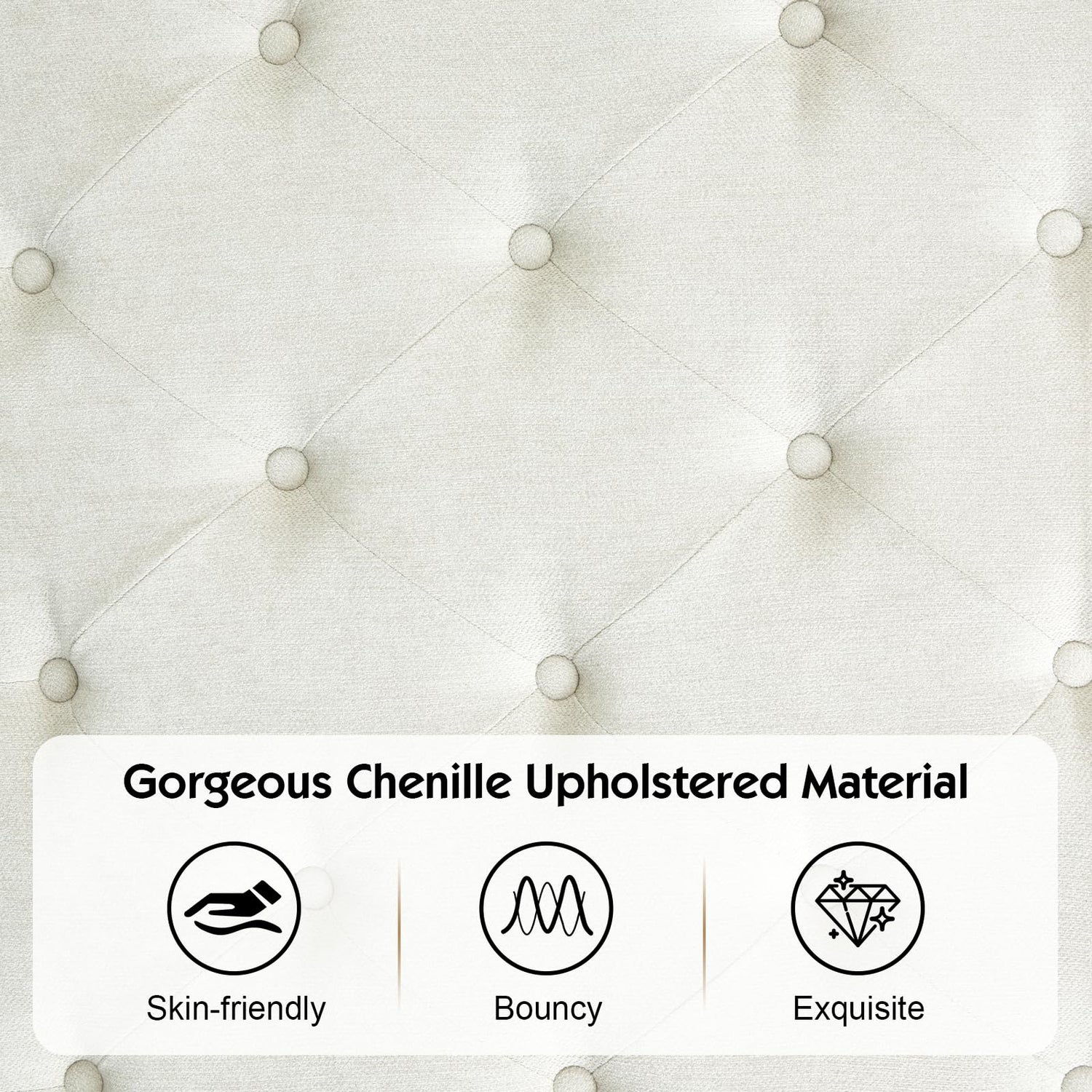 - [Exquisite Rustic Farmhouse Charm] Crafted with heavy crown molding railing & chenille fabric, a weathered antique wood grain finish perfect blend of classic & modern styles, button tufted & antique brass nail heads add an elegant touch to your room