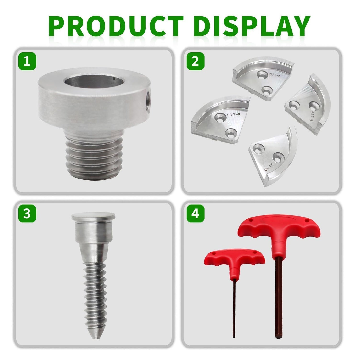 Optional Kits 2 Jaw Set Include: 1 x Chuck, 1 x big round jaw, 1 x round jaw, with 2 x T-wrench & screw chuck, the adapter can convert 1" x 8 TPI to 3/4" x 16 TPI 3 Jaw Set Include: 1 x Chuck, 1 x round jaw, 1 x big round jaw, 1 x pin jaw, with 2 x T-wrench & wood screw 5 Jaw Set Include: 1 x Chuck, 1 x flat jaw, 1 x round jaw, 1 x big round jaw, 1 x pin jaw, 1 x step jaw, 1 x adapter, with 2 x T-wrench & wood screw Application scenario: