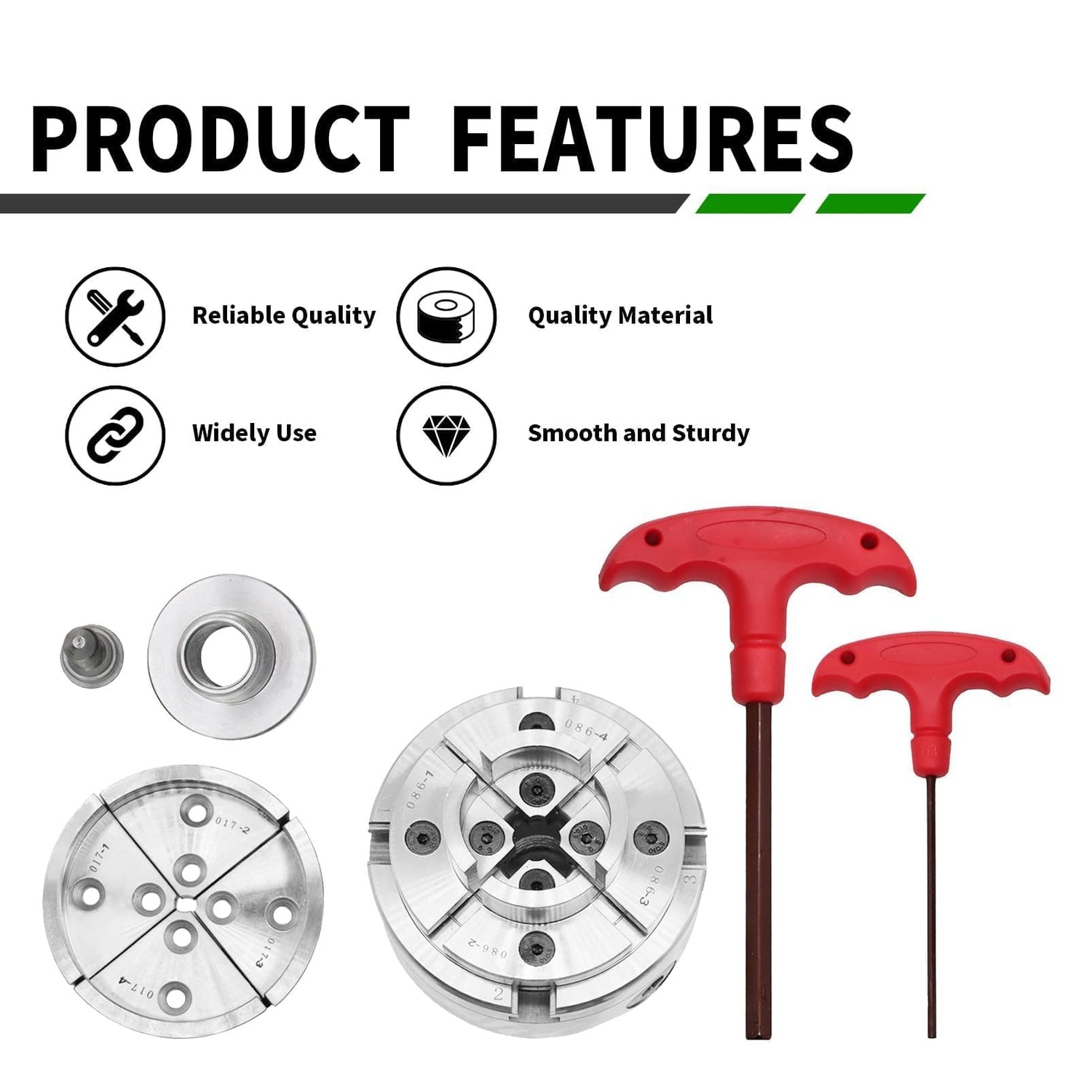 If you are working with wood carving, the 4-inch self-centering woodworking lathe chuck ensures high precision in the engraving process, so that every engraving can be precise.