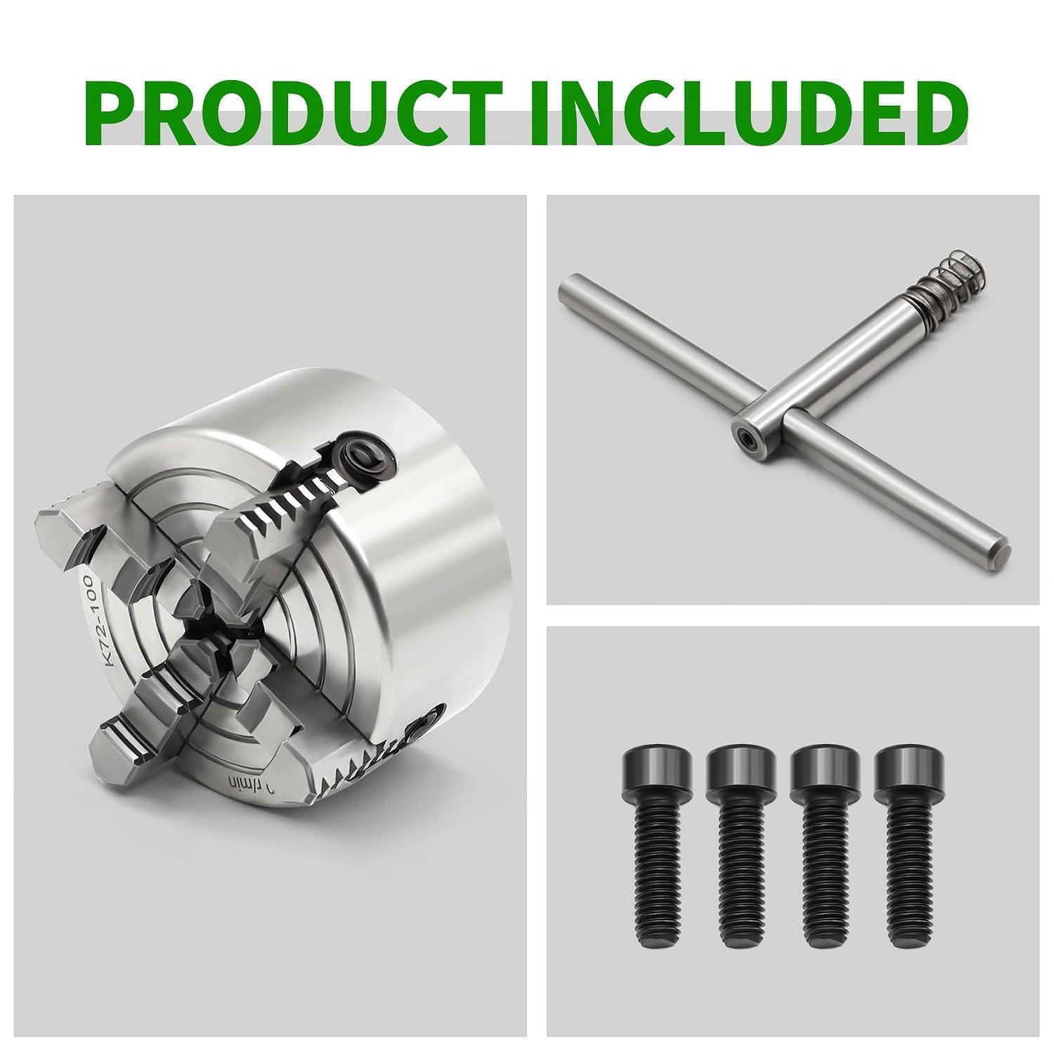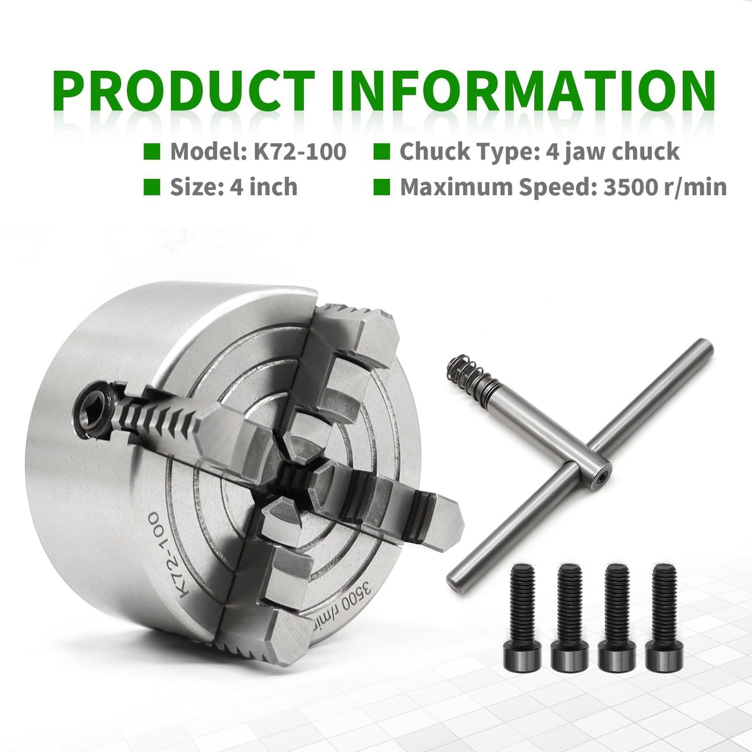 - Package Inclueded: 1 × lathe chuck, 4 × mounting screws, 1 × T wrench