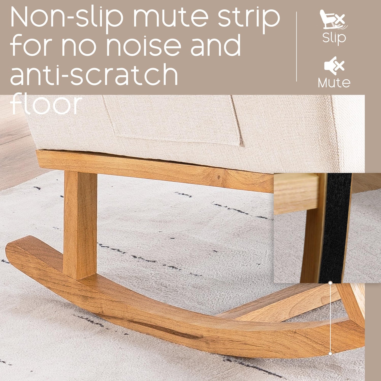 - Comfy & Safe & Mute Rocking Design : With strong well-built wood, makes this indoor rocker accent chair stable. Extended wooden leg prevent rollover when you are coaxing baby. And bottom non-slip strips design is perfect for no noise and anti-scratch