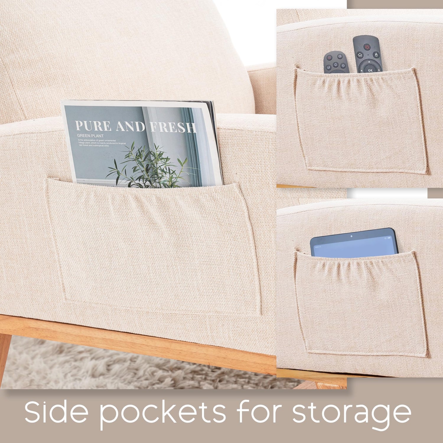 - Practical Side Pocket : The side pocket on the glider chair can store a book, a phone within easy reach while you sit. This modern rocking chair could be a stylish and functional piece of furniture that adds both convenience and beauty to your home