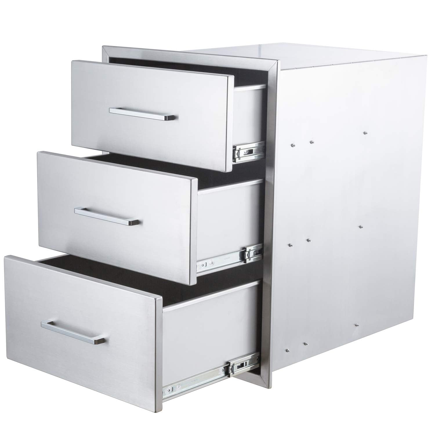 yuxiangBBQ Outdoor Kitchen Drawers Stainless Steel 3-Drawer BBQ Drawer 14" W x 20.5" H x 23" D Enclosed Built-in Drawer Flush Mount for Outdoor Kitchens & BBQ Islands