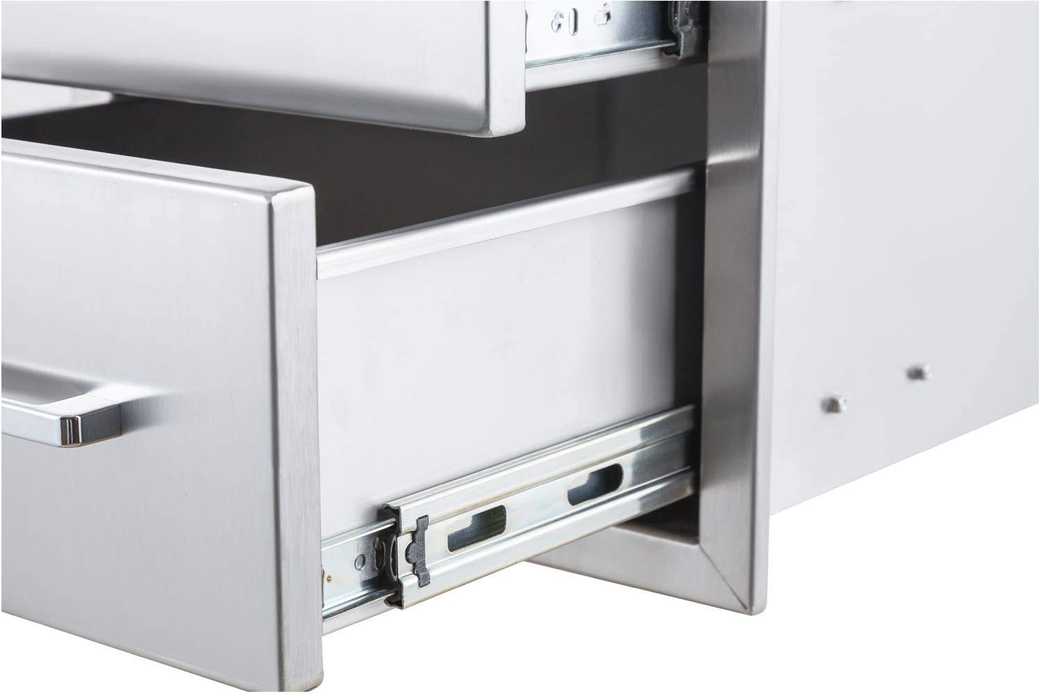 - Fully-lengthened rails, the upper and lower rails adopt thick silent ball guide rails, which makes it easier to push and pull outdoor kitchen drawers; the silent sliding type prevents people from hearing irritating noises. Use the smooth slide rail to feel the intuitive smoothness, ensuring that this barbecue drawer can be pulled in and out easily and smoothly.
