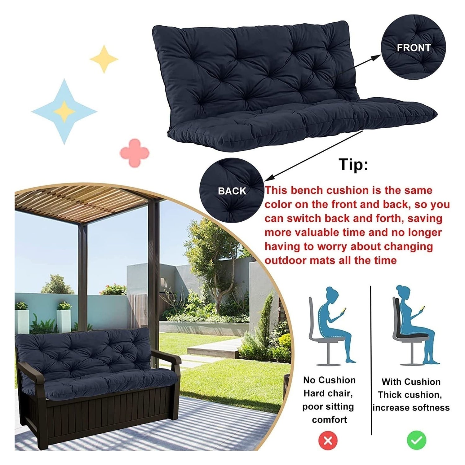 - 【Applicable scenario】40*40*4 inches / 47*40*4 inches for 2 seats, 60*40*4 inches for 3 seats, Large size cushion with backrest, applicable for camping, beach, garden, terrace, balcony, outdoor bench or swing seat or window seat.
