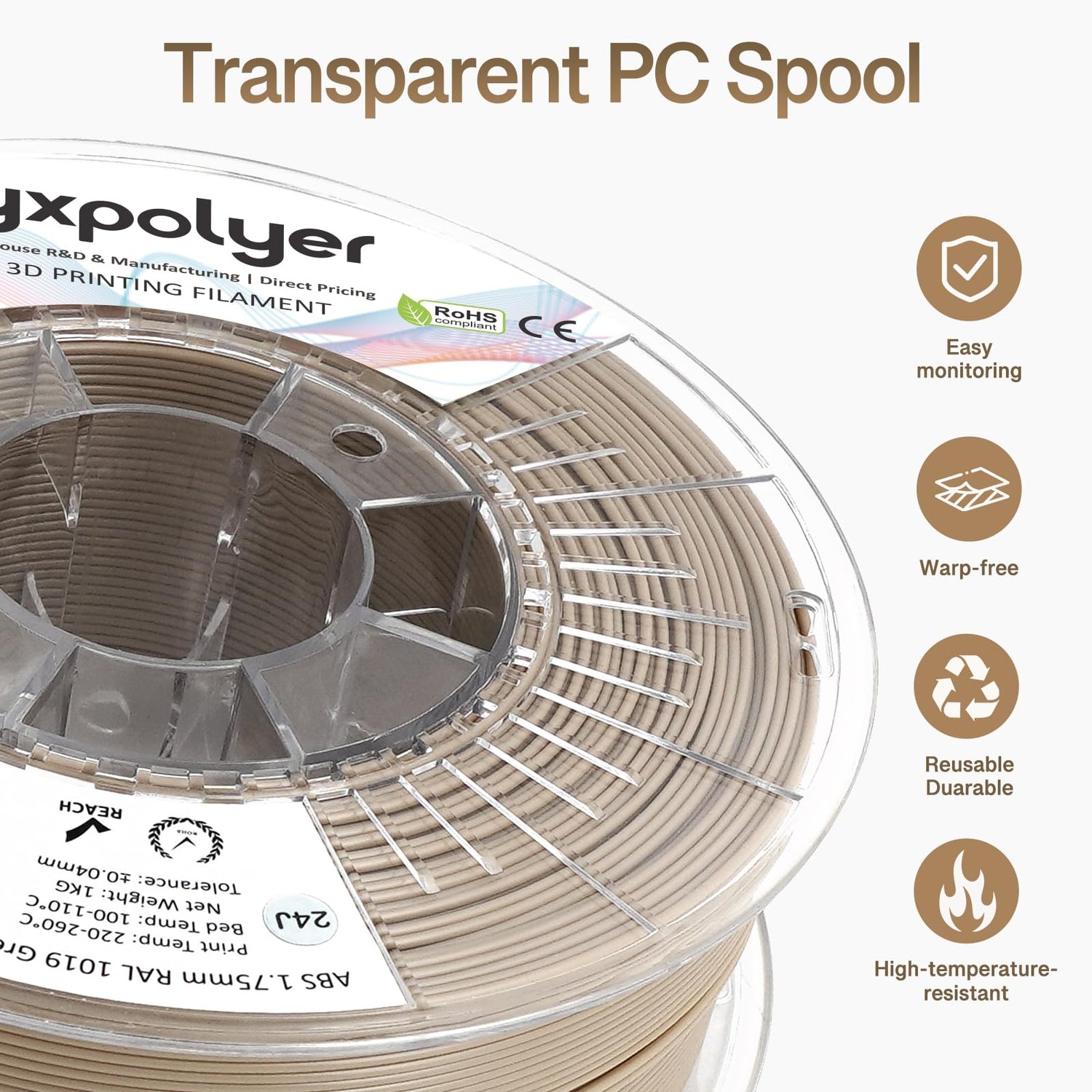 YXPOLYER ABS Filament Marble Series 3D Printing Filament 1.75mm 1kg, Grey Beige Textured Tan 3D Printer Filament High-Heat, High-Strength & Moisture-Resistant, with Upgrade AMS-Compatible Spool
