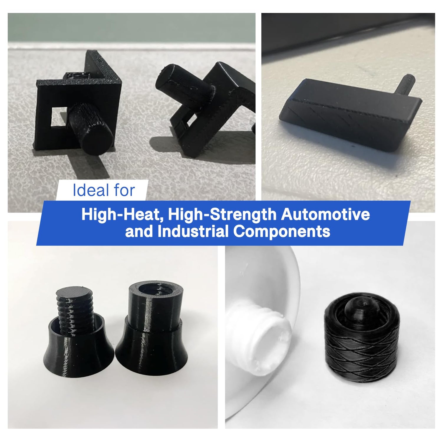 - [Versatile Applications] PC CF filament is widely used in engineering, manufacturing, electronics, and design. Its balance of strength, heat resistance, and lightweight properties makes it ideal for functional prototypes, jigs, fixtures, industrial tools, automotive components, and robust 3D-printed parts.