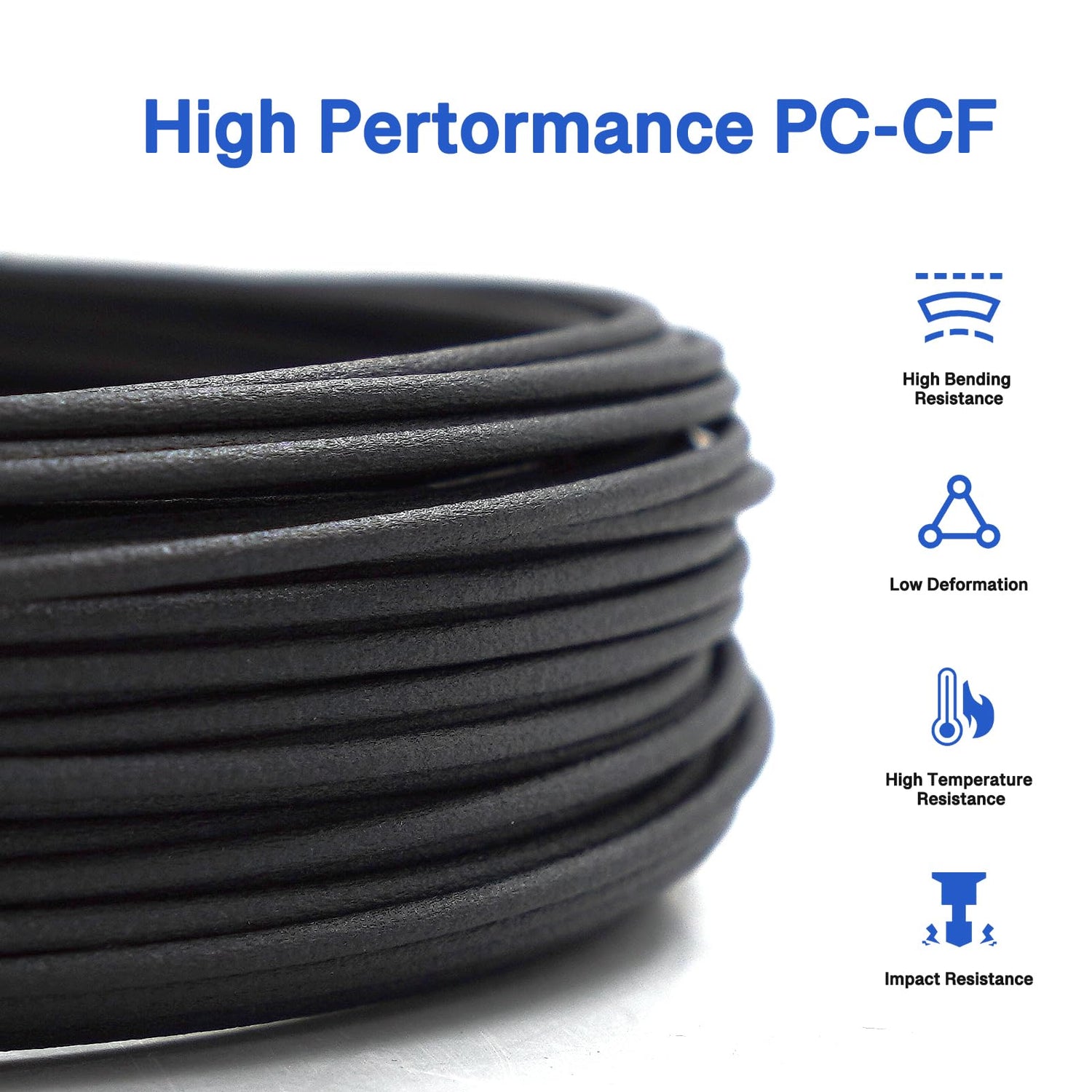 - [High Strength and Durability] PC CF filament offers exceptional strength and durability. The carbon fiber reinforcement in the polycarbonate matrix significantly enhances its mechanical properties, producing parts capable of withstanding high mechanical stress and impacts