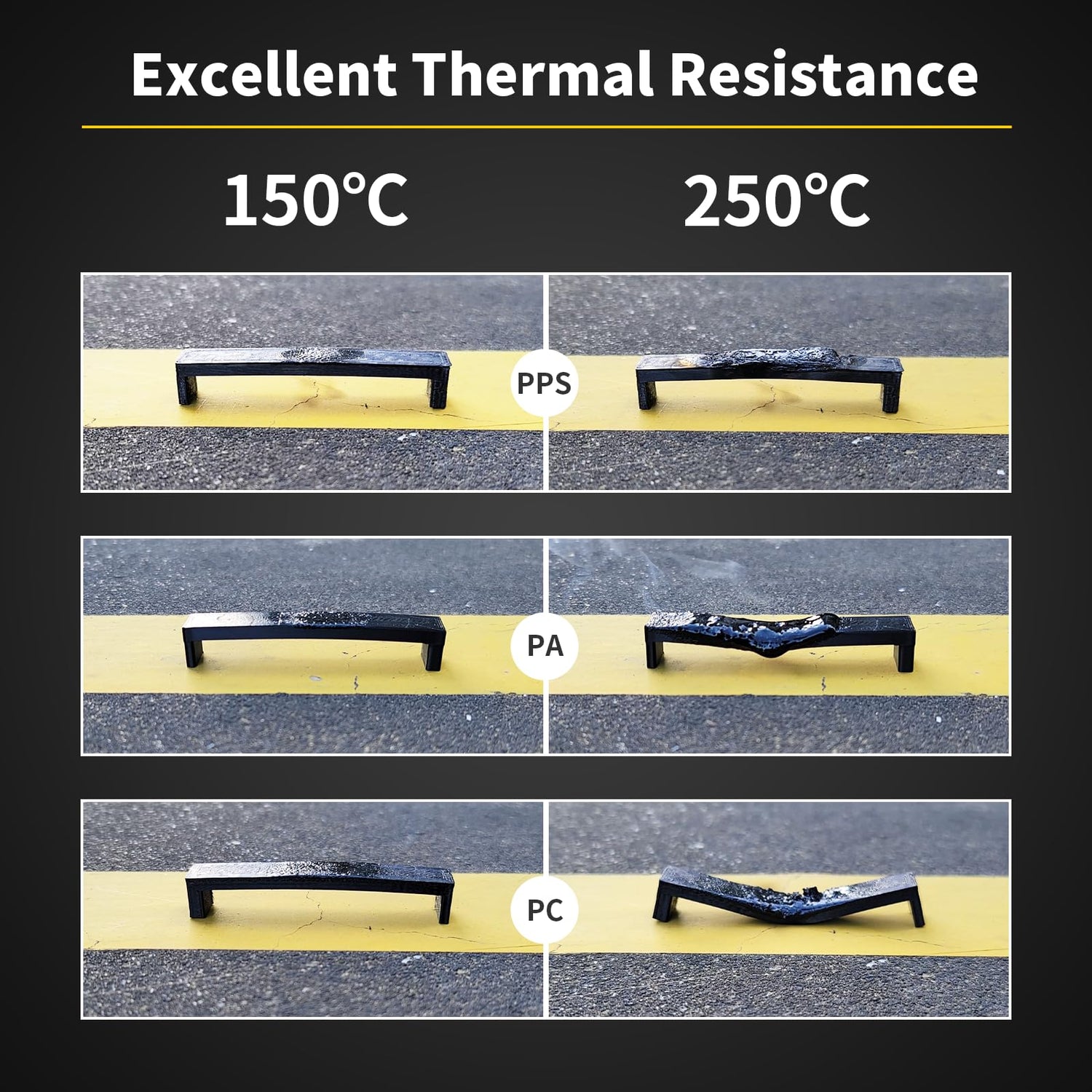 • 【YXPOLYER High Temperature PPS Filament】YXPOLYER PPS filament is a toughened modified high temperature 3d printing material with high flame retardancy (UL94-V0), this flame retardant filament exhibits exceptional chemical resistance along with high thermal and mechanical properties. It has extraordinary strength and modulus even at high temperatures(high temperature resistance up to 180℃ and melting temperatures up to 300°C)