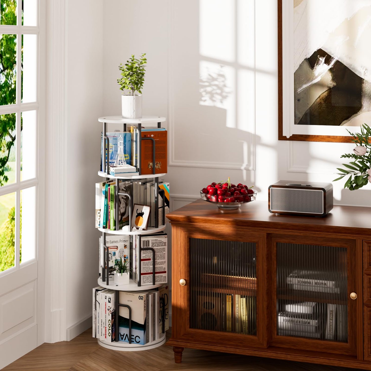 YYTDDUUU Rotating Bookshelf,4 Tier Revolving Bookshelf Tower Spinning Bookcase,Round Rotating Book Shelf,Corner Bookcase Corner Organizer for Home&Office