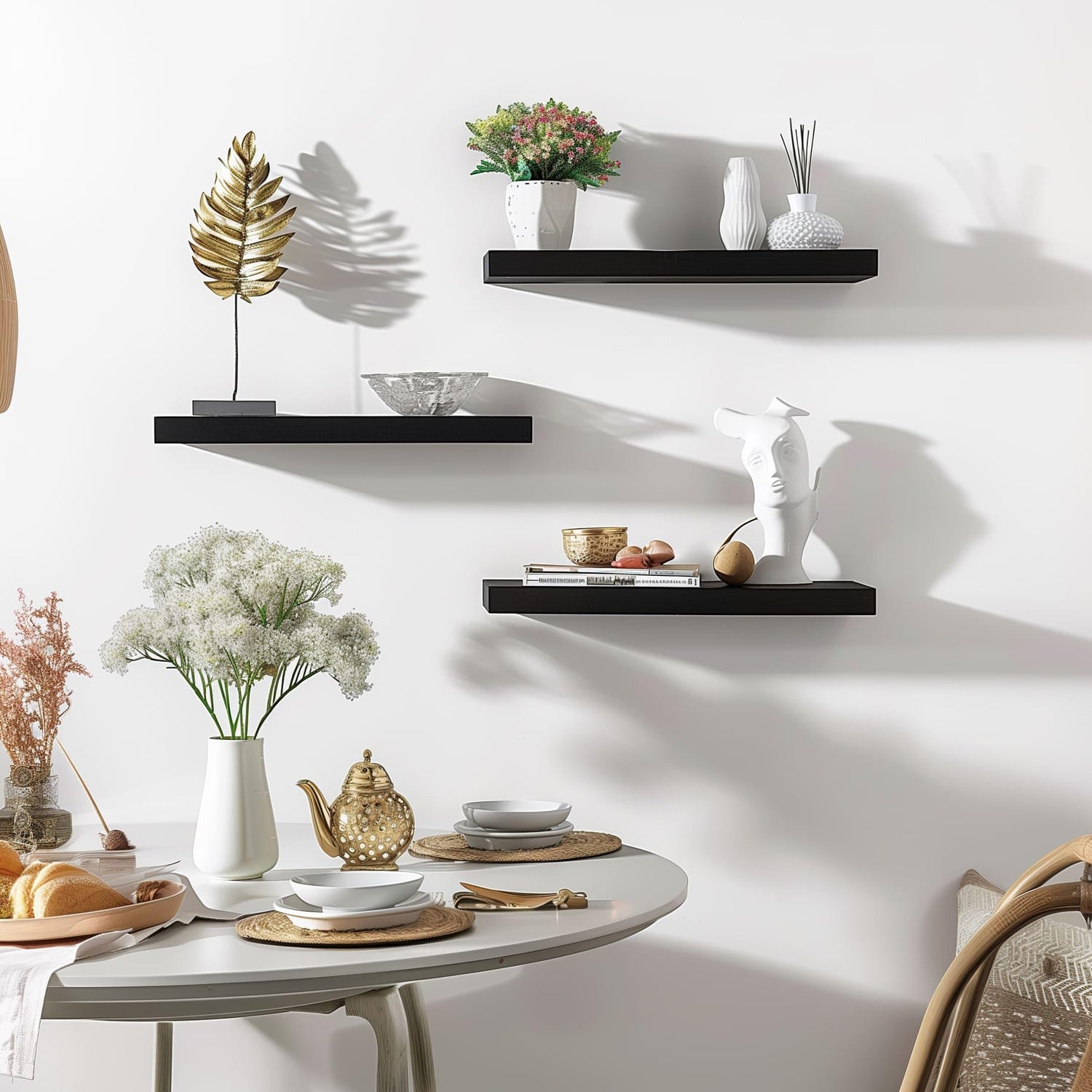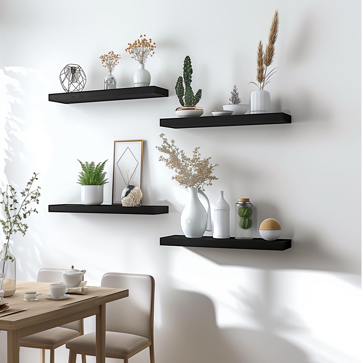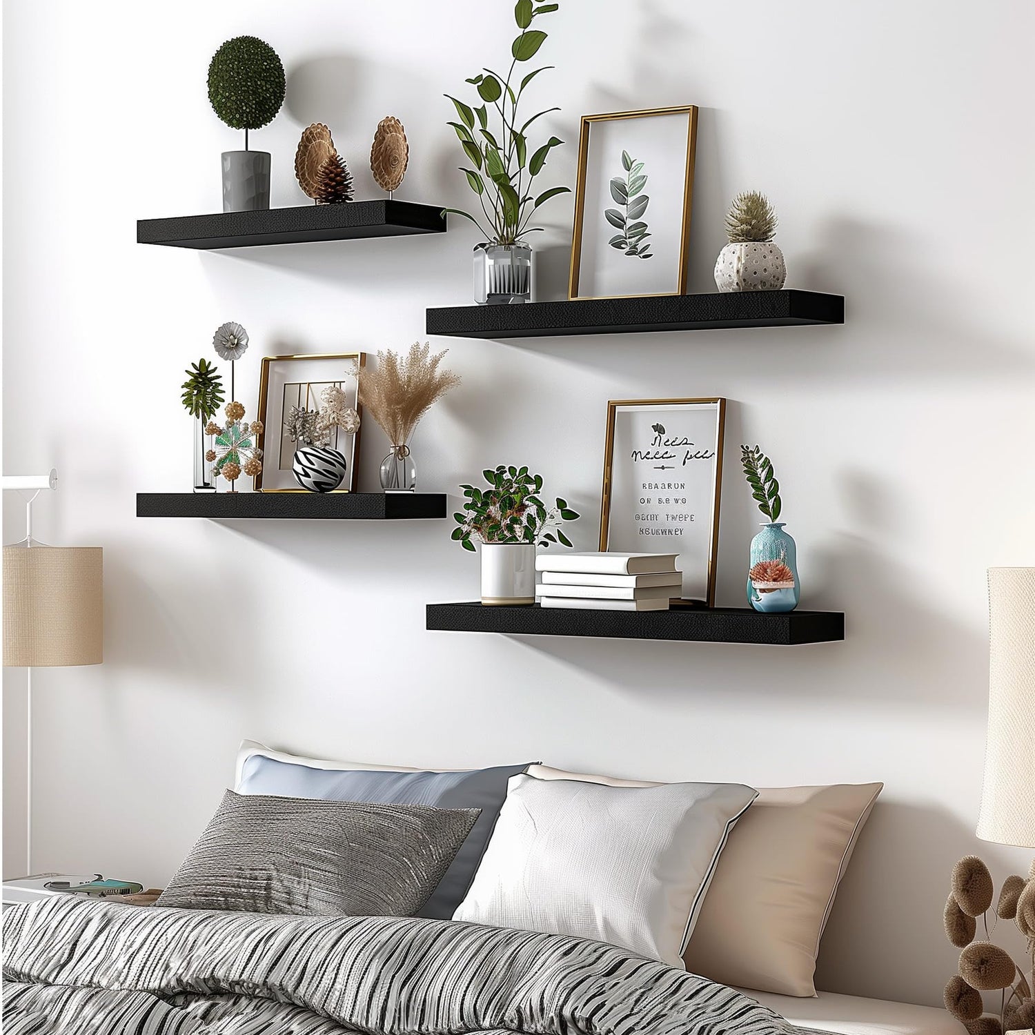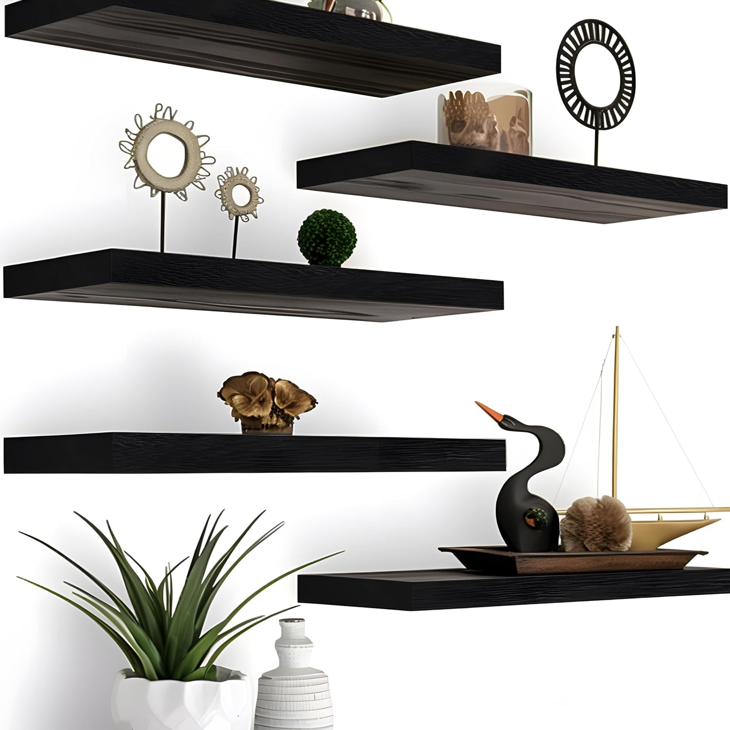 YYWUOJJ Wood Floating Shelves for Wall, Rustic Wall Shelves for Bedroom, Wall Mounted Floating Shelf, Set of 6 Black