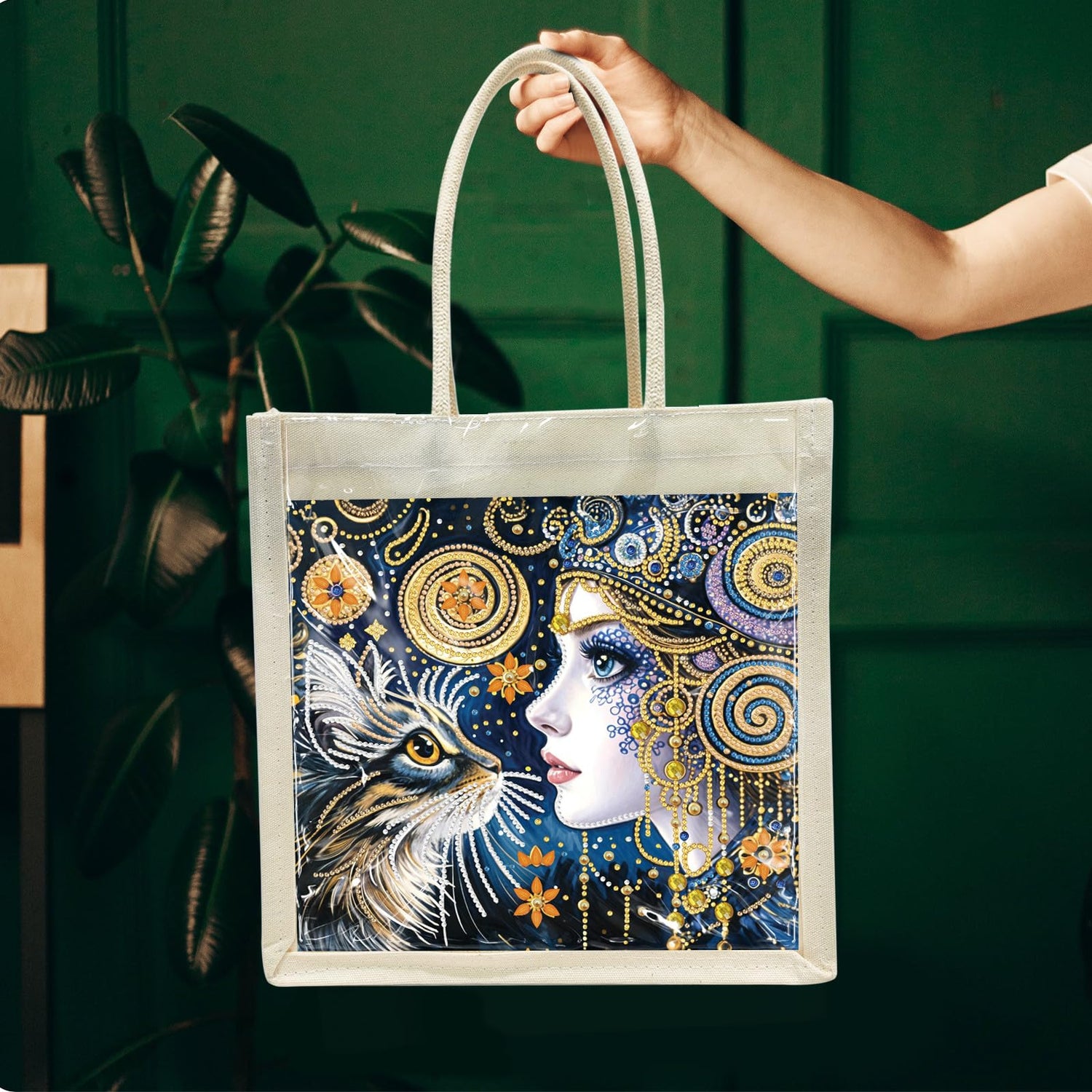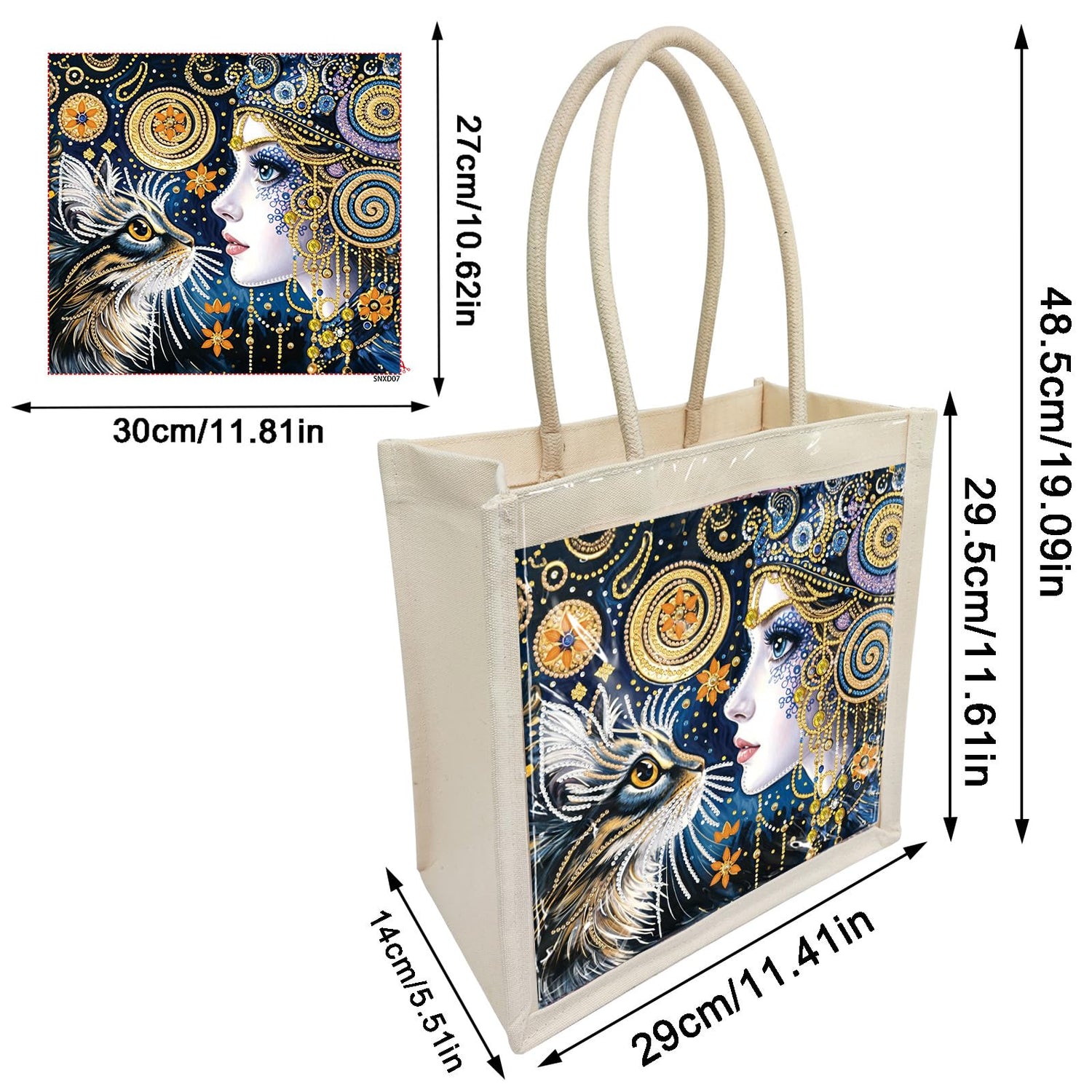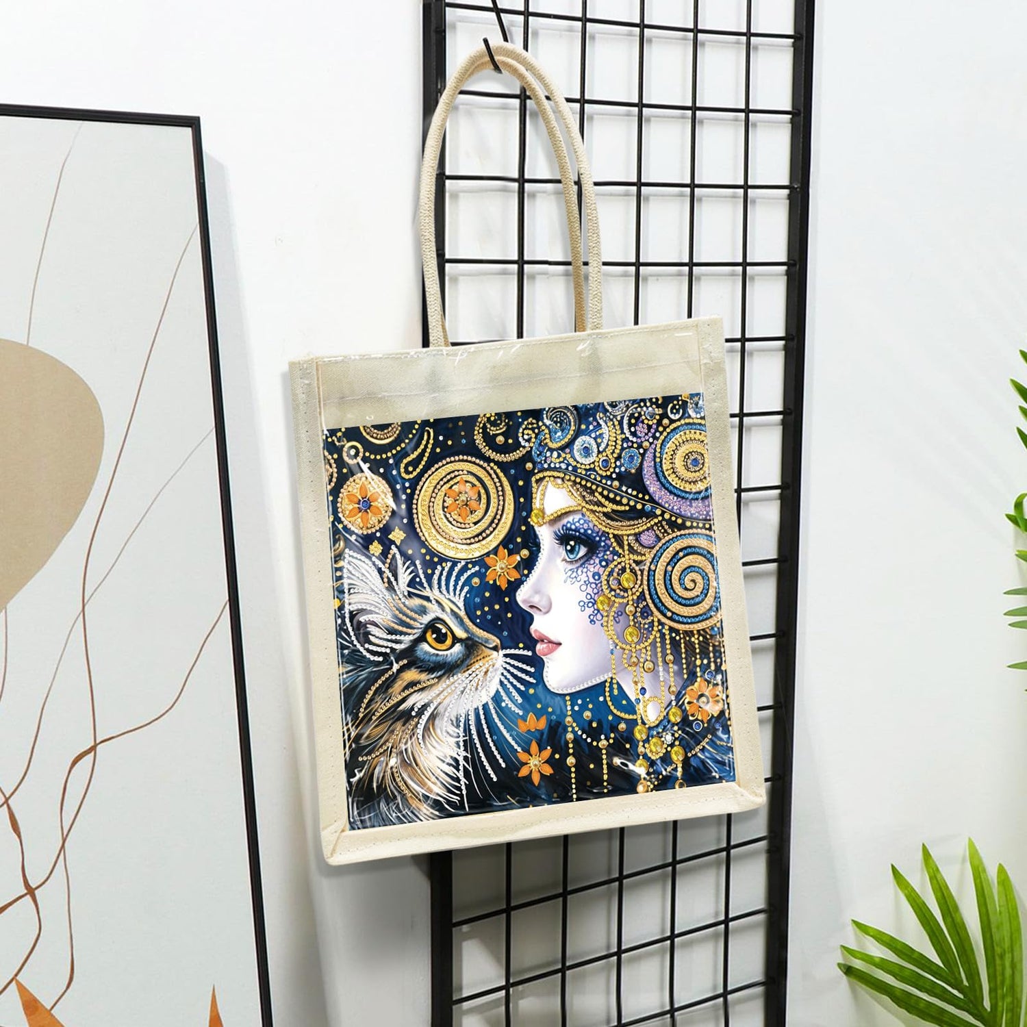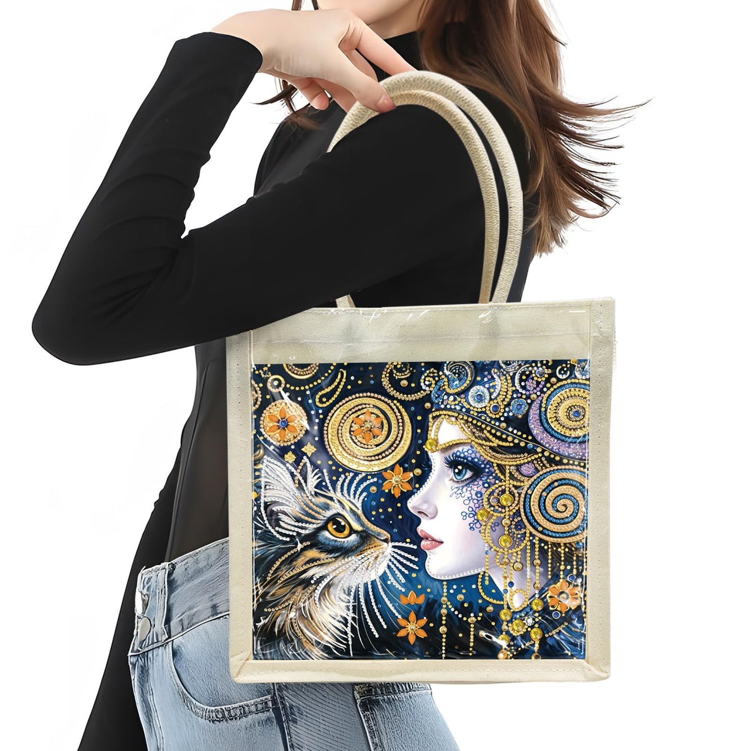 yzARTche Diamond Art Painting Handbag, DIY Diamond Art Handmade Tote Bag Shoulder Bag with Replaceable Pattern-07-Cat