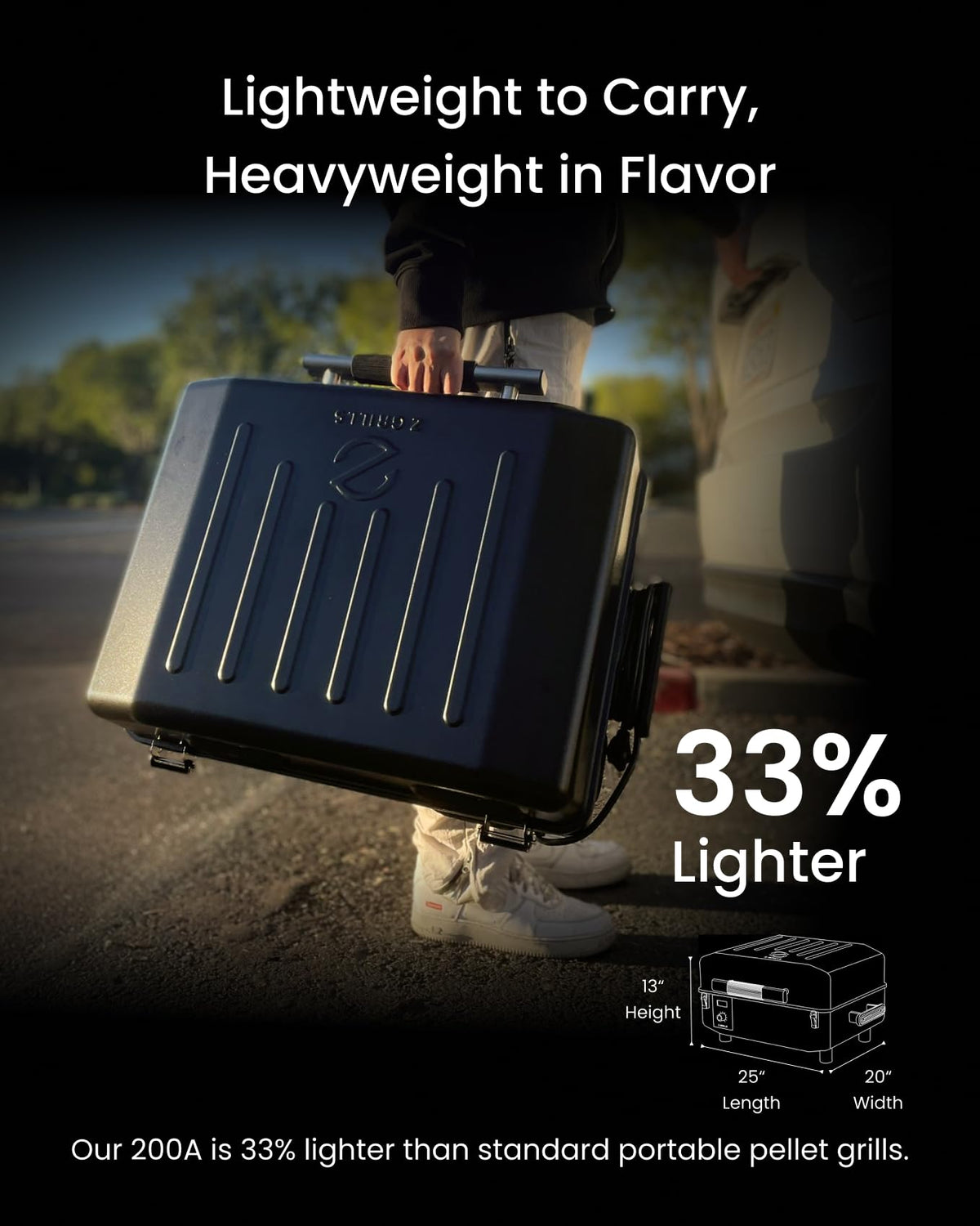 Z GRILLS 200A Portable Wood Pellet Grill & Smoker, Tabletop Wood Pellet Smoker with PID V2.0 Controller, Meat Probes, 202 sq.in Cooking Area, Fit for RVs, Road Trips & Apartments