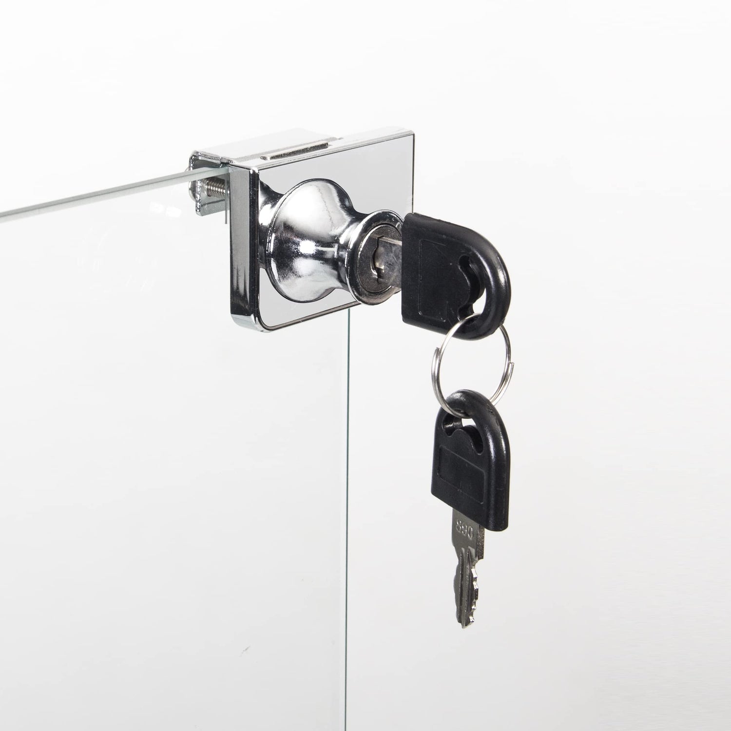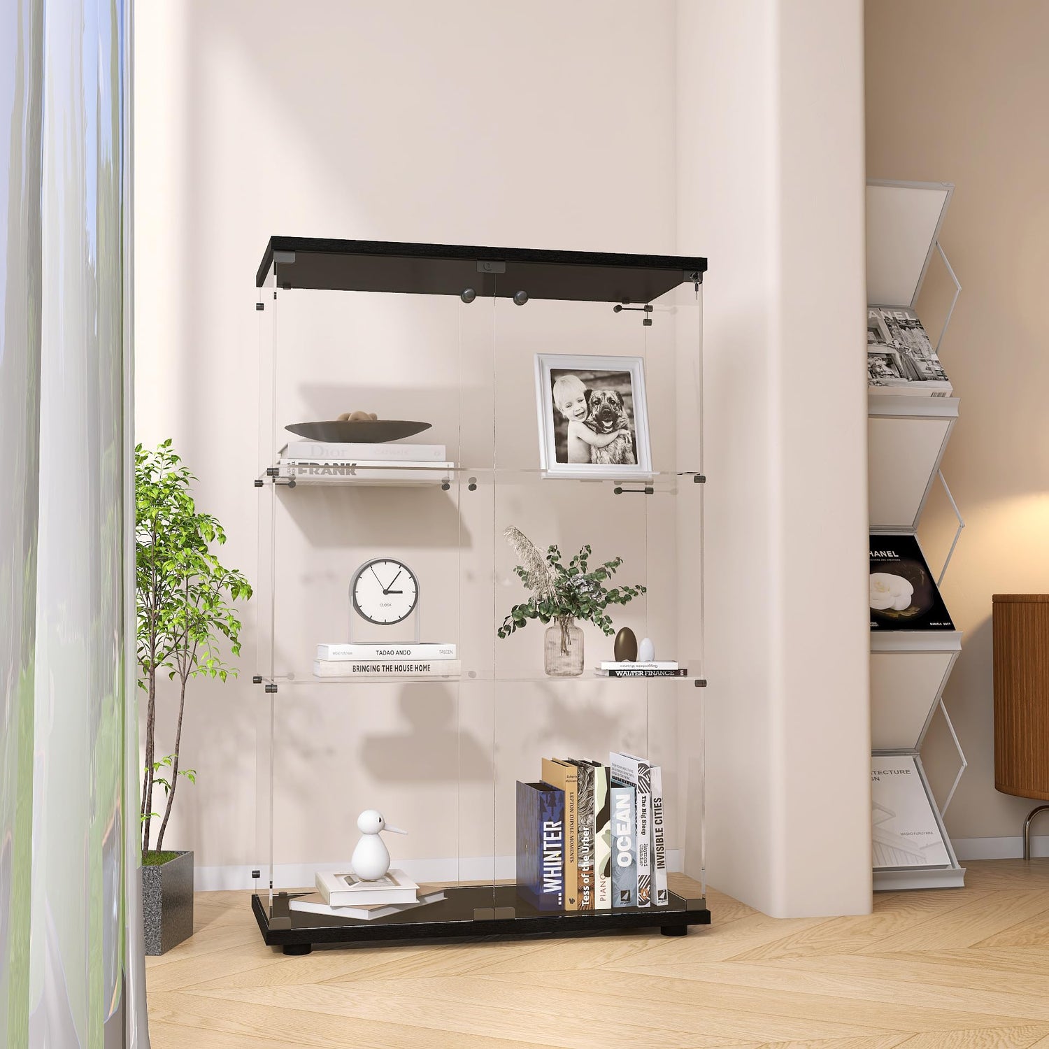 - đăGlass Display Cabinet with 2 Doors and LockăThere are bumper strips between glass plates and sides for maximum safety, durable and practical for everyday use.The glass display case with easy open and close doors which keep dust free. Add with door lock ,add security to your collections