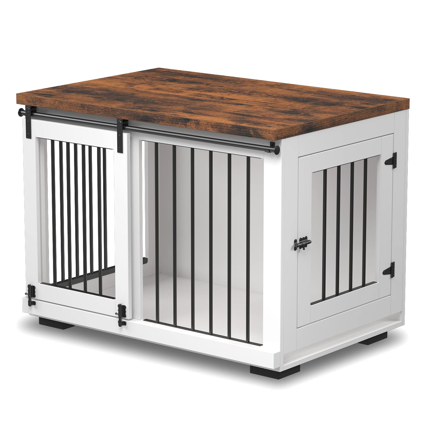 - 【Blend Into Other Furniture】The elegant barn door design is the perfect aesthetic solution to decorate dogs home that blend in better with your sweet home. The thickened rustic wood tabletop gives the space a great rustic vibe, looking way better than a traditional wire kennel.