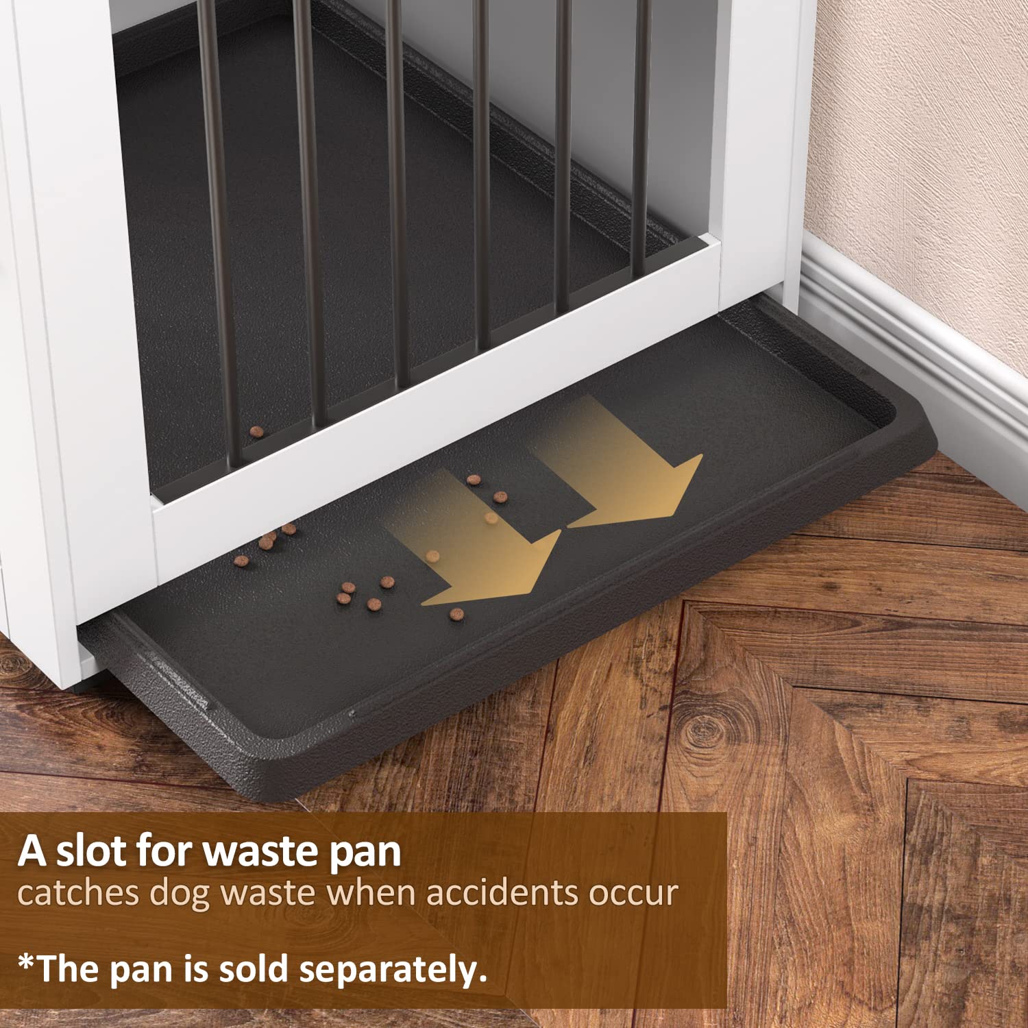 - 【FUNCTIONAL Dog Crate】 Dogs need their own safe space while people are going in and out of the house. The steel bars allow for good air circulation and more view of the room. A slot for pan is installed if a crate pan/tray is going to be used, and the slot can be placed on either the right or left. (Pan size: 35''x22''x1'', sold separately.)