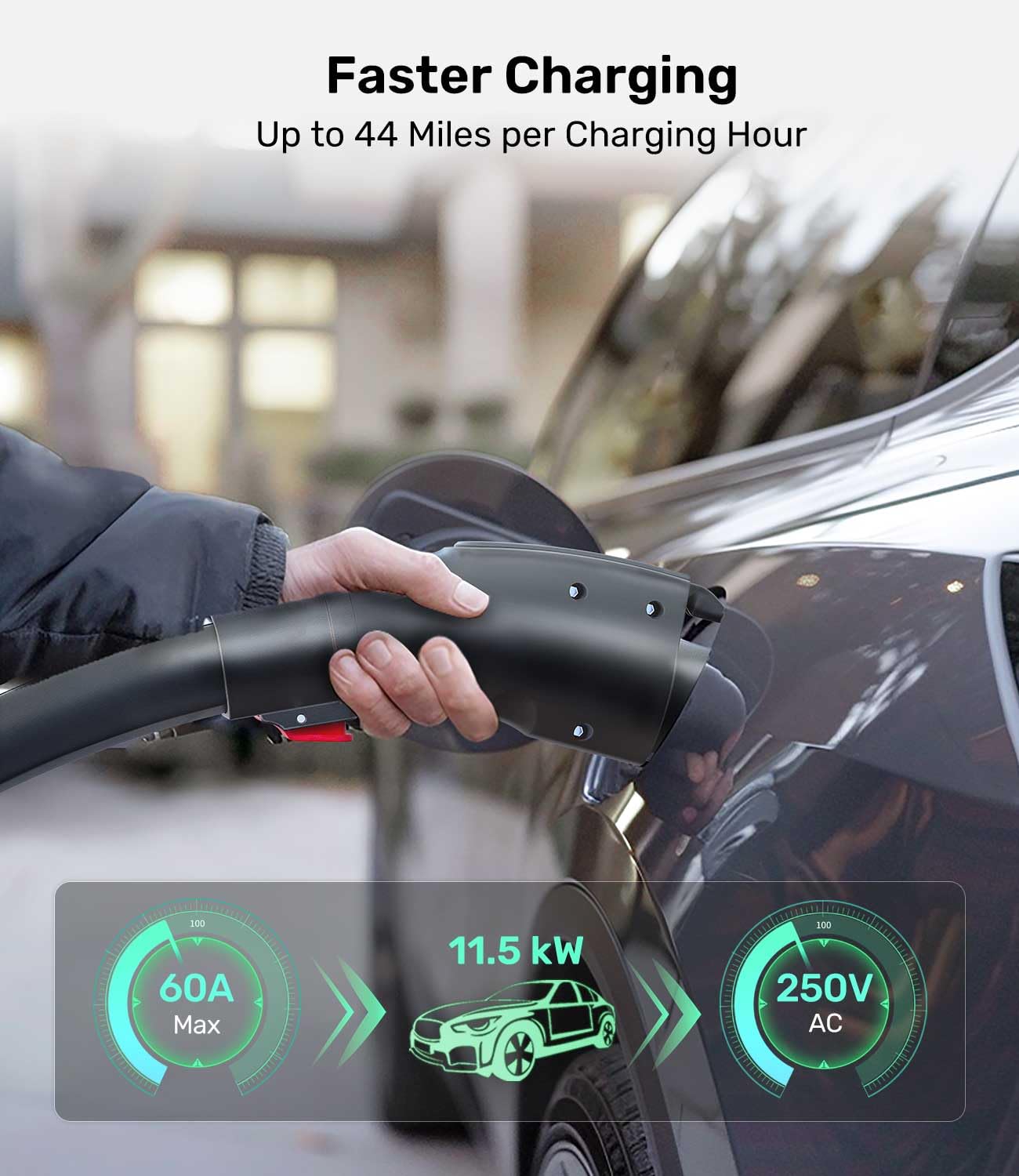 - Fast Charging: Supports up to 60A and 250V AC, adding up to 44 miles of range per hour (or 11.5 kW) with Wall Connectors for your EV. Fully charges in as little as 6 hours
