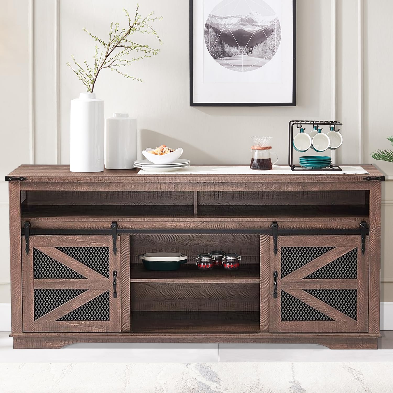 - Sliding Barn Doors: The standout feature of this TV stand is the sliding barn doors that not only add a touch of farmhouse elegance but also conceal your media essentials. Slide them open when it's movie night, and close them to maintain a neat and tidy look.