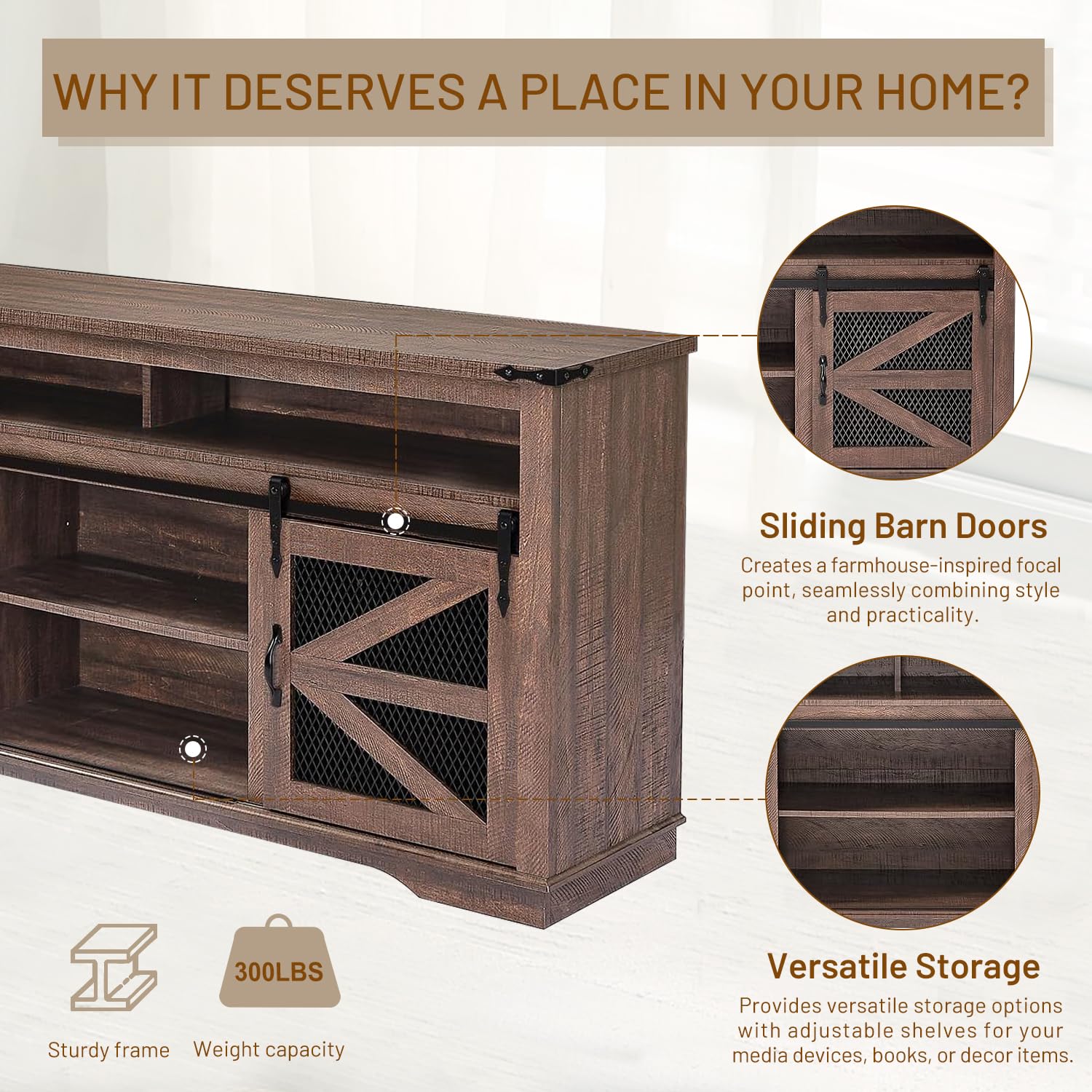 - Showcase Your Style: Elevate your living space with the Zanzio Farmhouse TV Stand, a perfect blend of rustic charm and modern functionality. Designed to accommodate up to 75-inch TVs, it's a statement piece that adds character to your entertainment area.