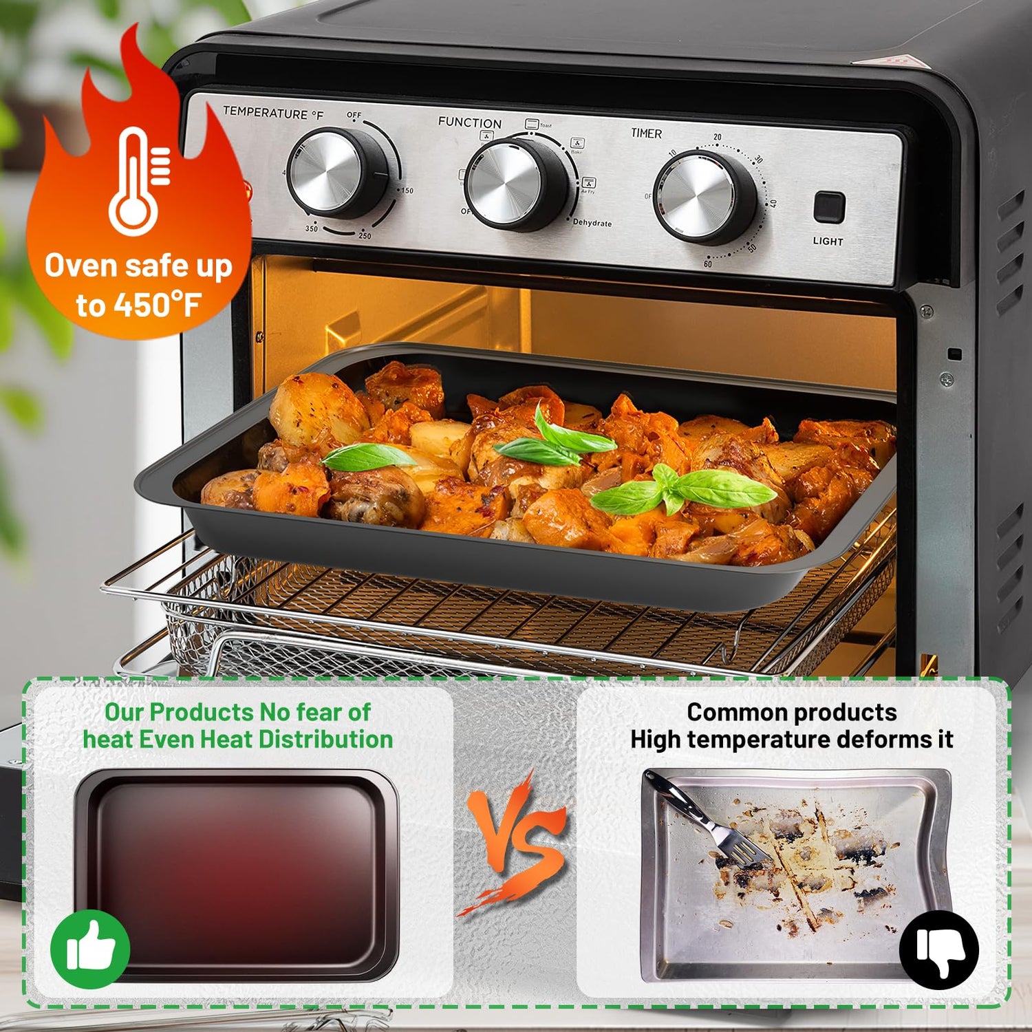 - Nonstick Coating: The non-stick oven baking set have superior nonstick coating ensures that the food will easily be released when cooked without sticking or breaking and cleans up quickly. It's dishwasher safe but we recommend hand-washing to maintain the long-lasting, stain-resistant properties of each of our baking pan