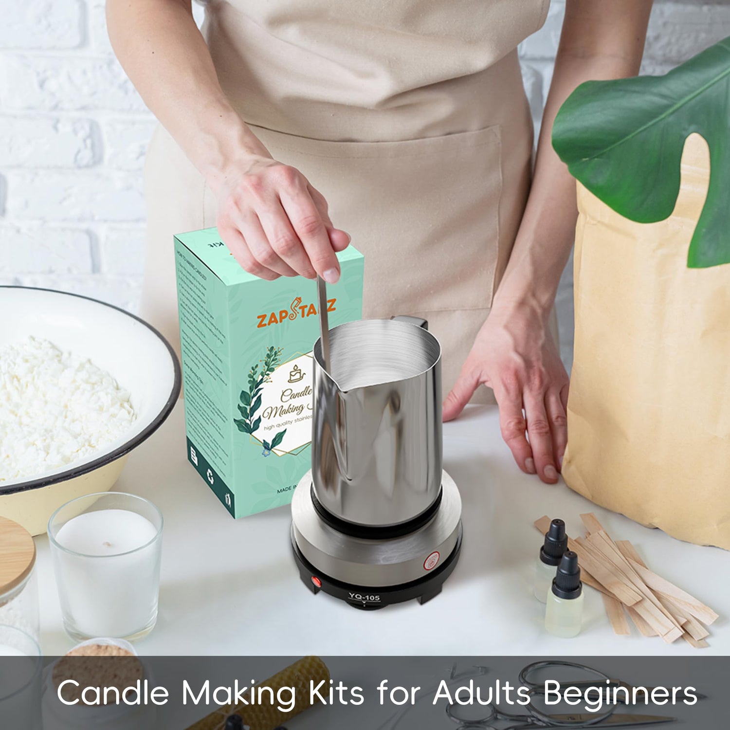 Zapstarz Candle Making Kit with Hot Plate, Candle Making Supplies for Adults Beginners, Wax Melting Pot with Stirring Spoon, Anti-Scalding Pad, Thermometer for Candle Making, Candle Making Pouring Pot