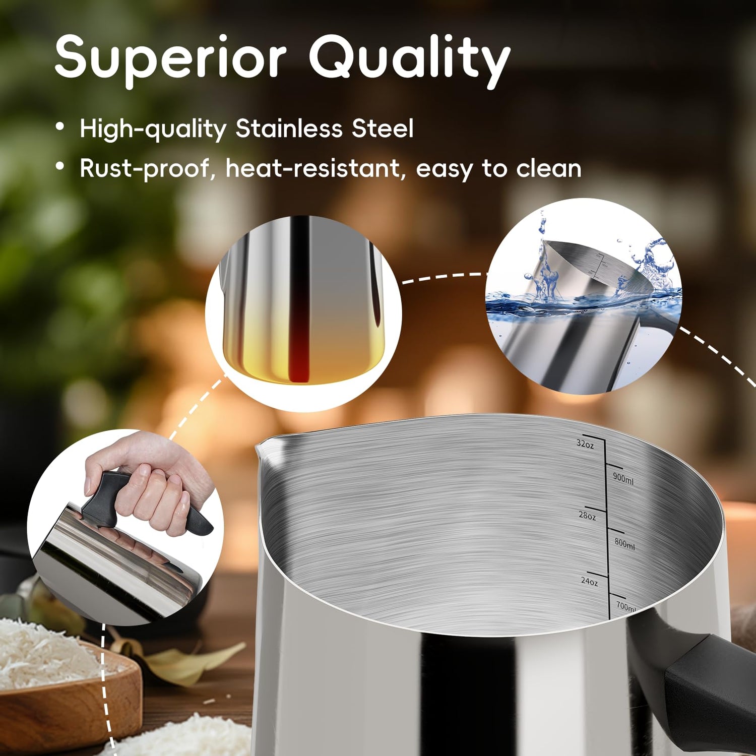 - Large Capacity Design: This Candle Making Pouring Pot has a capacity of 900 ml/32 oz, which allows you to pour a large amount of candle making materials at one time, saving time and increasing efficiency