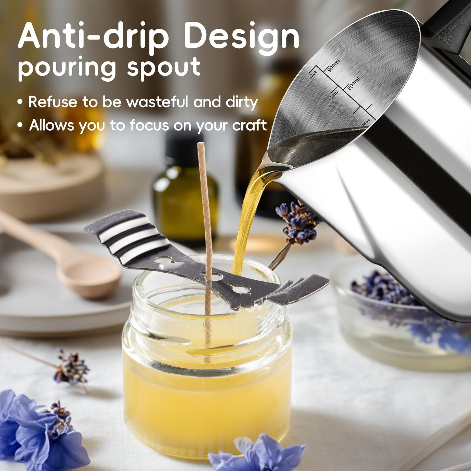 - Drip-Resistant Design: The candle making pot with pouring spout is designed to be drip-proof, which prevents mess and waste during the candle making process and ensures that your workspace stays neat and tidy, allowing you to focus on your craft
