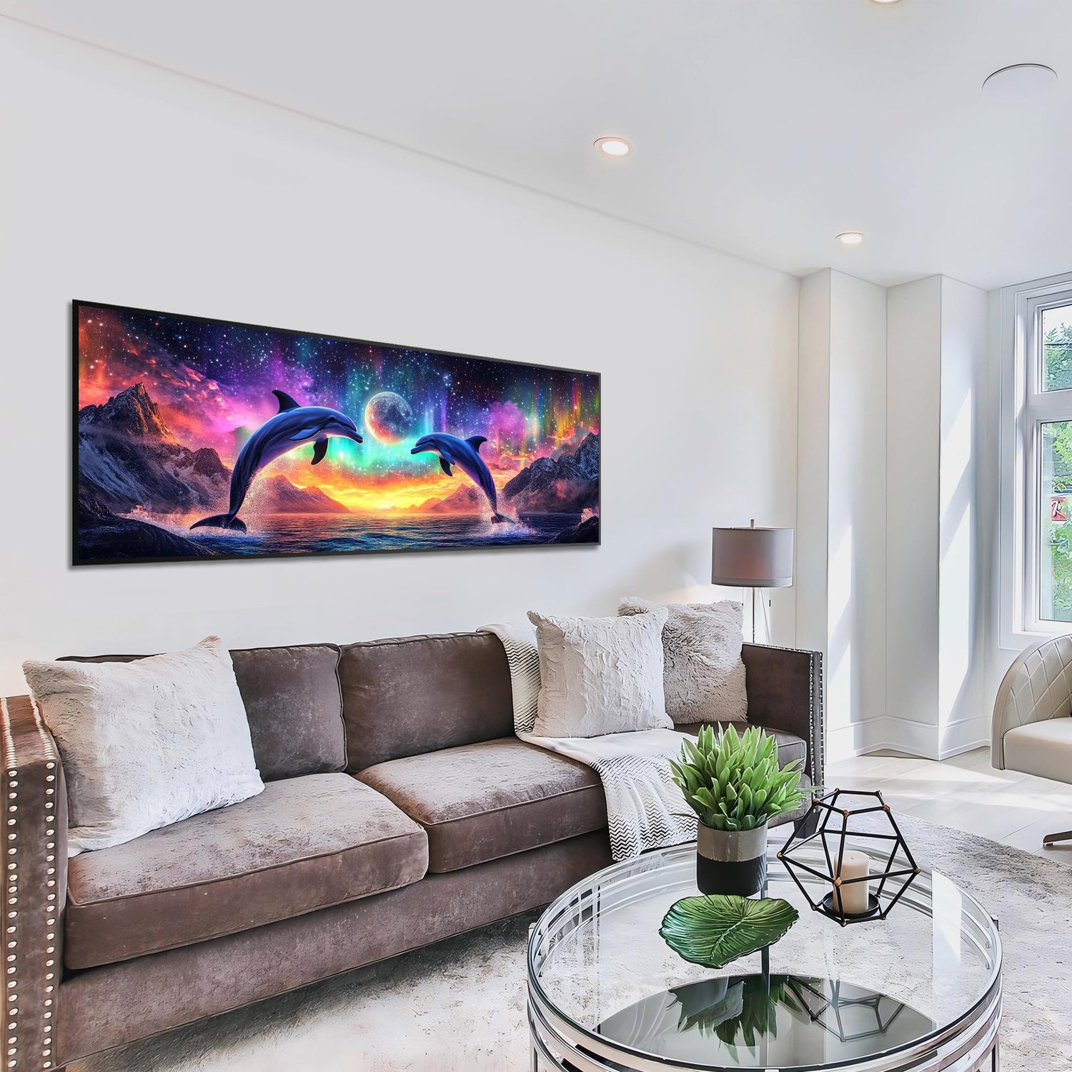 Zariocy 5D Large Diamond Art Kits for Adults Aurora Dolphins, Diamond Painting Art Scenery Round Full Drill Crystal Diamond Embroidery Paintings Arts Craft for Home Office Wall Decor 31.5x11.81 inch