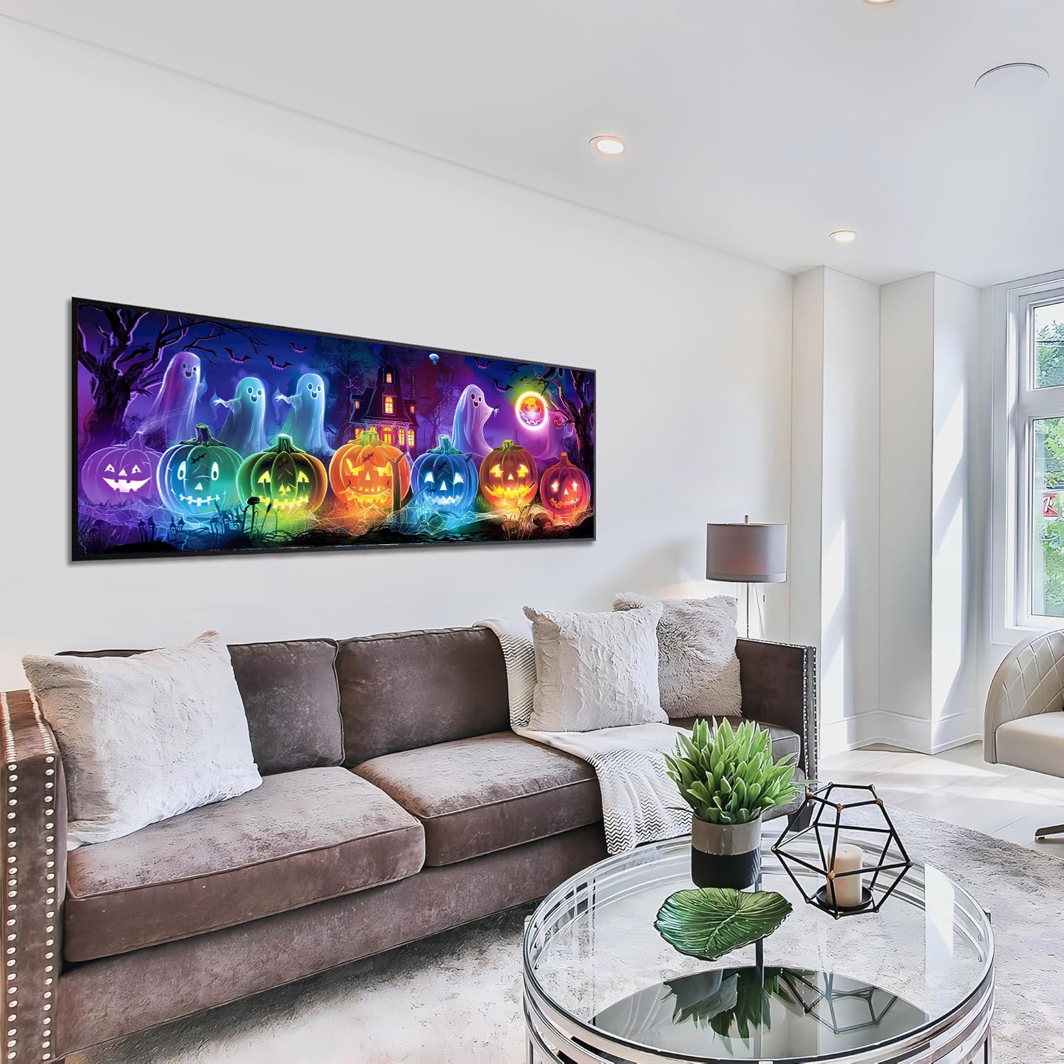 Zariocy 5D Large Diamond Art Kits for Adults Glowing Pumpkin, Diamond Painting Art Halloween Round Full Drill Crystal Diamond Embroidery Paintings Arts Craft for Home Office Wall Decor 31.5x11.81 inch