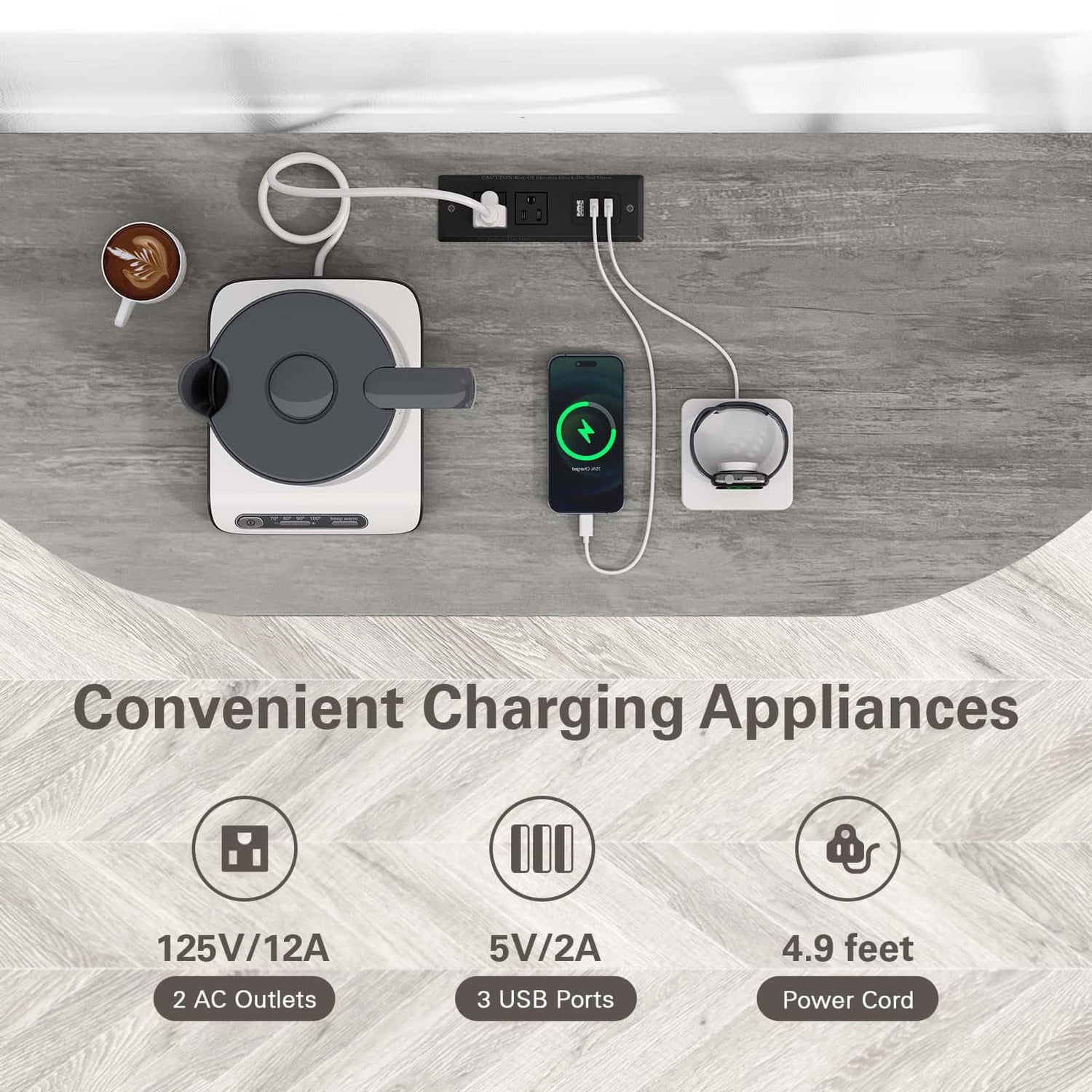 - [Convenient Charging Sockets]: The wine bar for home comes with a built-in power outlet, which features 2 AC plugs and 3 USB ports. This makes it convenient for holding kitchen appliances and connecting them easily.