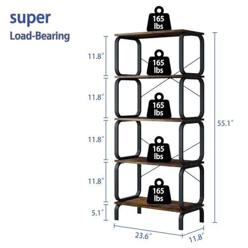 Elevate your space with the zbet 5-Tier Rustic Brown Industrial Bookshelf today and experience the perfect blend of style and practicality.