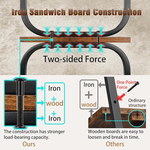 Engineered for strength, this industrial bookshelf features an iron sandwich board construction, ensuring exceptional durability. Each shelf supports up to 165 lbs, while the X-bars on the back offer enhanced stability, eliminating concerns about wobbling or sagging. The high-quality metal frame is designed with a one-piece mould for unmatched strength, preventing issues like broken welds or bending.