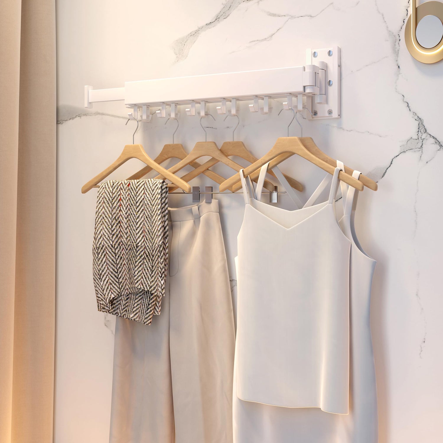 ZdwCyl Clothes Drying Rack,Laundry Space Saver Wall Mounted,Retractable,Collapsible(Tri-Fold), White Color Rack Clothing