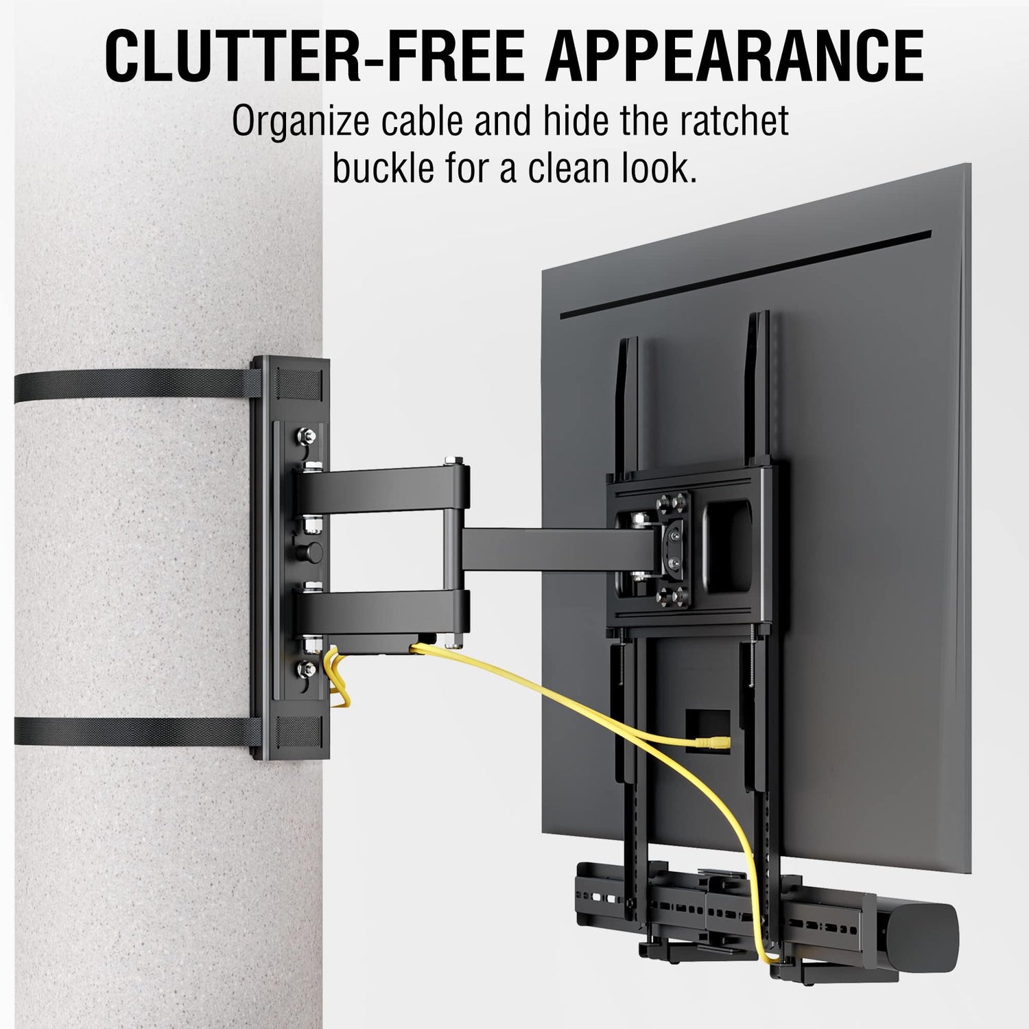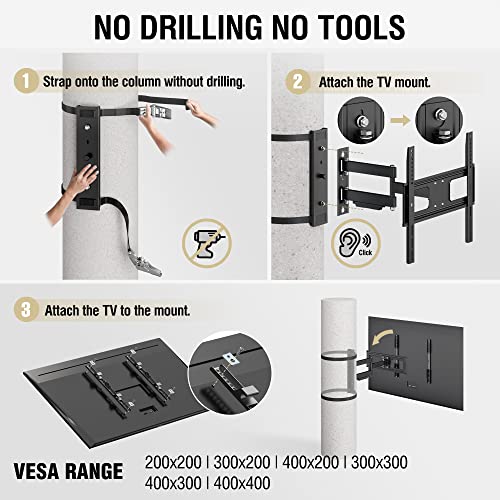 - The Revolutionary No-drilling Solution - Say goodbye to damage and welcome hassle-free installation. Our smart wrap-around mount ensures a secure fit without any drilling or structural damage to your post or pillar. Experience the future of TV mounting technology today! ADD TO CART now.