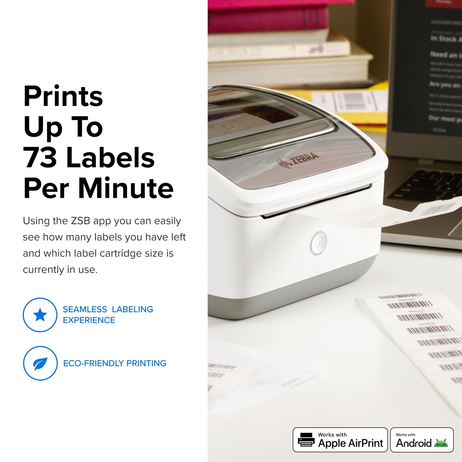 - What’s Included: The ZSB package comes complete with the printer, one full label cartridge (4 x 6), power cable, and manual for easy setup and operation. Also included is our label designer software with over 1,000 templates, and our ZSB Series app