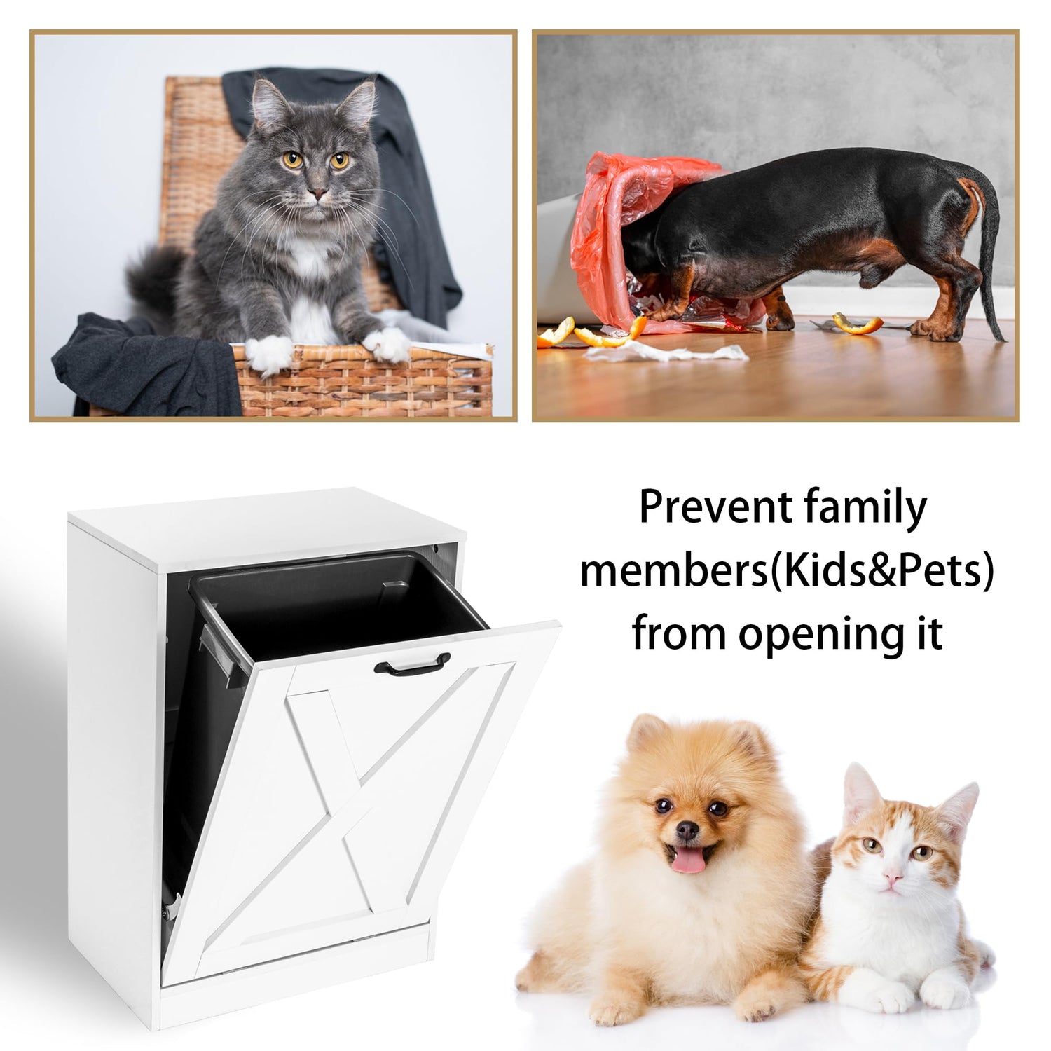 - 【MULTIFUNCTIONAL FURNITURE】: Wooden tilt out trash cabinet can be used not only as kitchen trash cans and recycling bins, but also as 13-gallon laundry baskets, storage baskets for clothes and toys, and storage cabinets for pet food. In addition, it is a good choice to use as a side cabinet, elegant porch cabinet.