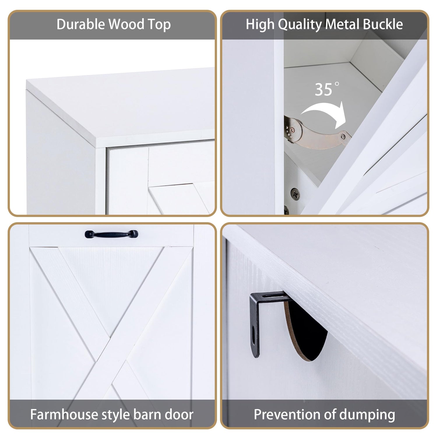 - 【DURABLE & STABLE】: The wooden trash cabinet uses a vintage barn door design with rust-proof hinges and iron handles. Its stability is ensured by its strong wooden structure.