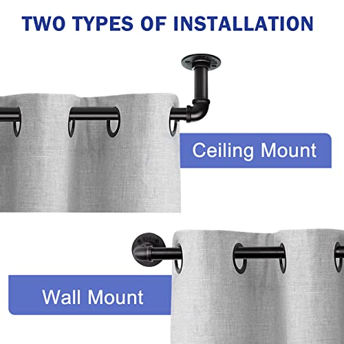 - INDUSTRIAL DESIGN & FROSTED FINISH:This black curtain rod features a rustic/steampunk/industrial design. Special but perfect painting technology, so that it presents a frosted matte finish. Passed the salt spray test, it is anti-rust and anti-wear. Extremely conspicuous decorative effect, this industrial curtain rod will fit well in a modern home and more so in a farmhouse. Compliments well with any type of curtains or draperies you have!