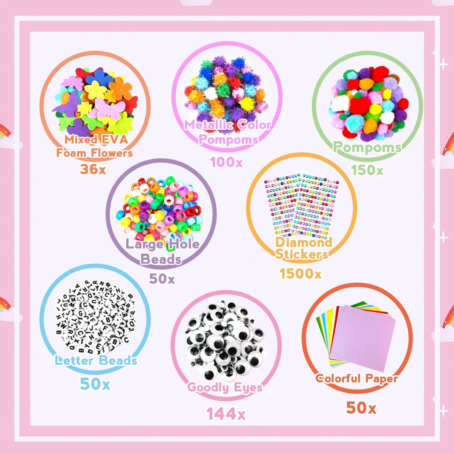- All in One Craft Kit: Kids Craft Supplies Set includes 3000+ Pipe Cleaners, Feathers, Googly Eyes, Storage Box & more! Ideal for school activities, playdates, or Birthday parties. Here is a fun one-stop, ready-for-anything craft supply bundle that you could create art to your heart's content