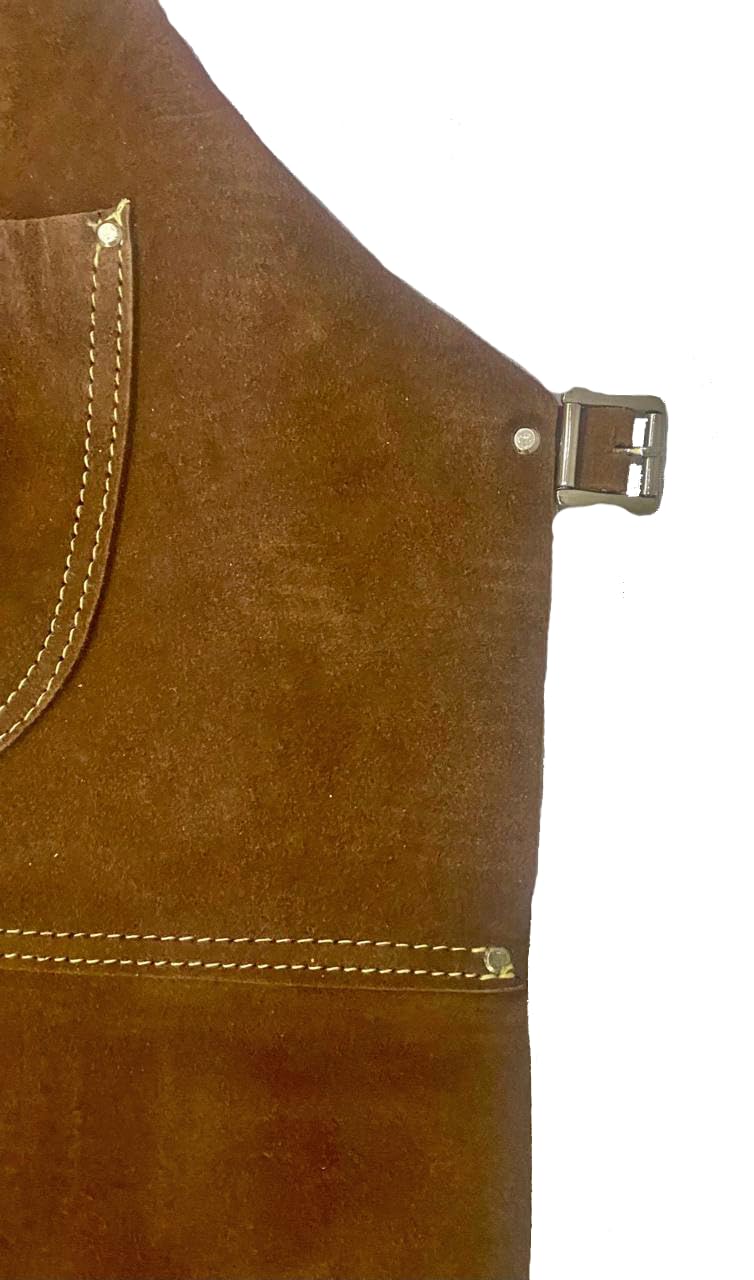 - Heavy duty heat and flame resistant split cowhide leather welding apron gives superior protection