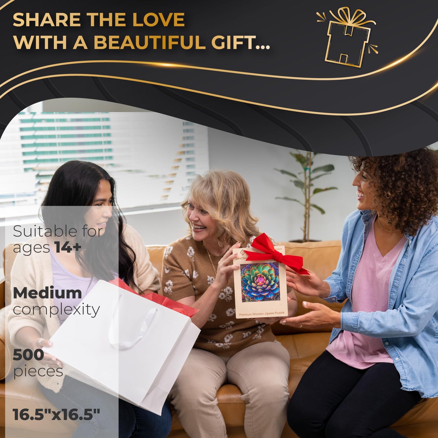 ZenChalet - Simply Succulent 500 Piece Jigsaw Puzzles - Giftable Wood Jigsaw Puzzles Adult - Distinctive Premium Gifts, Cool Puzzle Brain Teaser - Rompe Cabezas Adultos 500