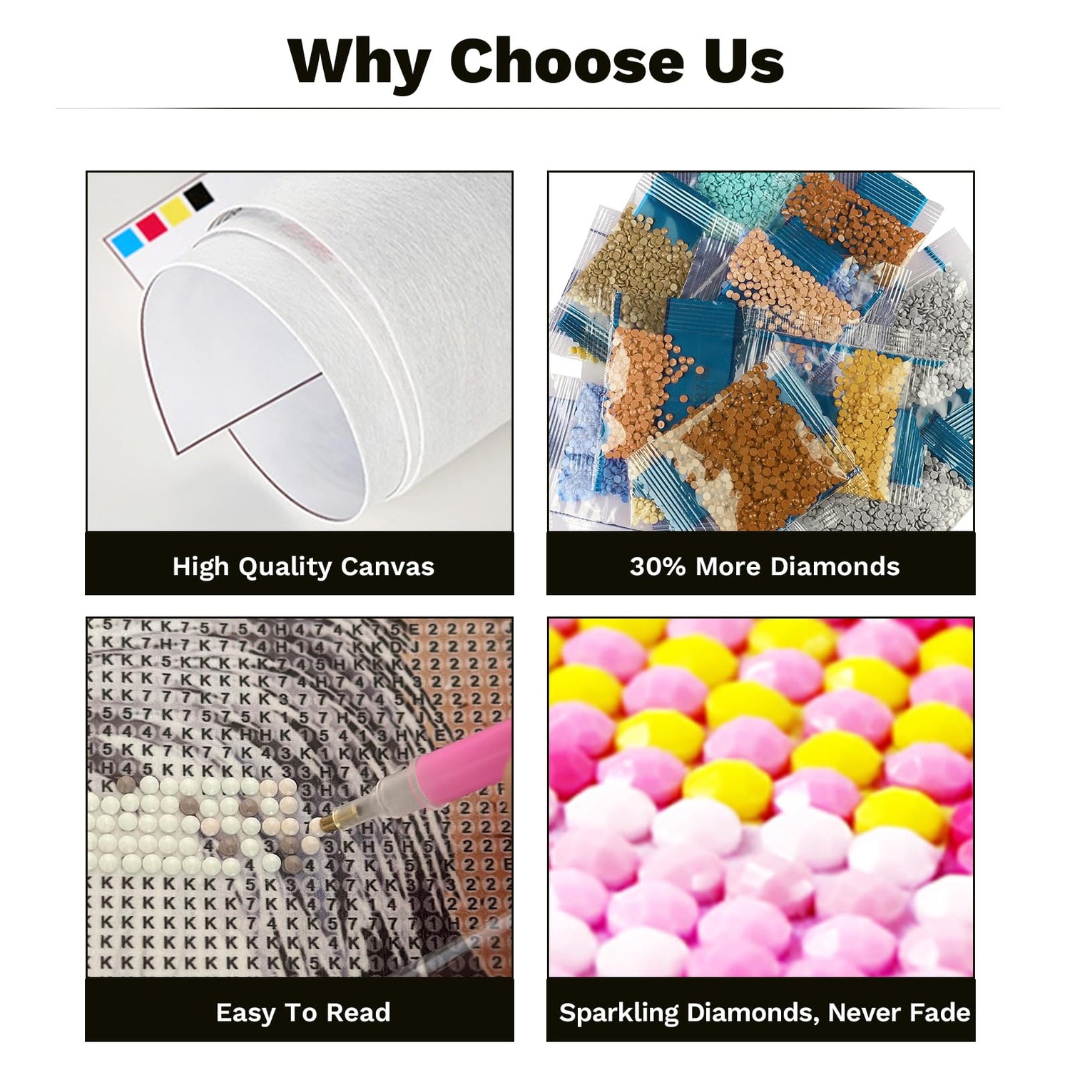 - Quality Material: ZENDIYO diamond art kits is made of HD quality canvas,The characters on the diamond art painting are defined by different numbers and letters to represent the pattern, and the characters are clear and easy to understand,the colors are vivid,and the images are beautiful. Canvas highly viscous, so that the diamonds do not come off easily. Each Diamond Dot Has 26 Facets That Sparkle In The Light
