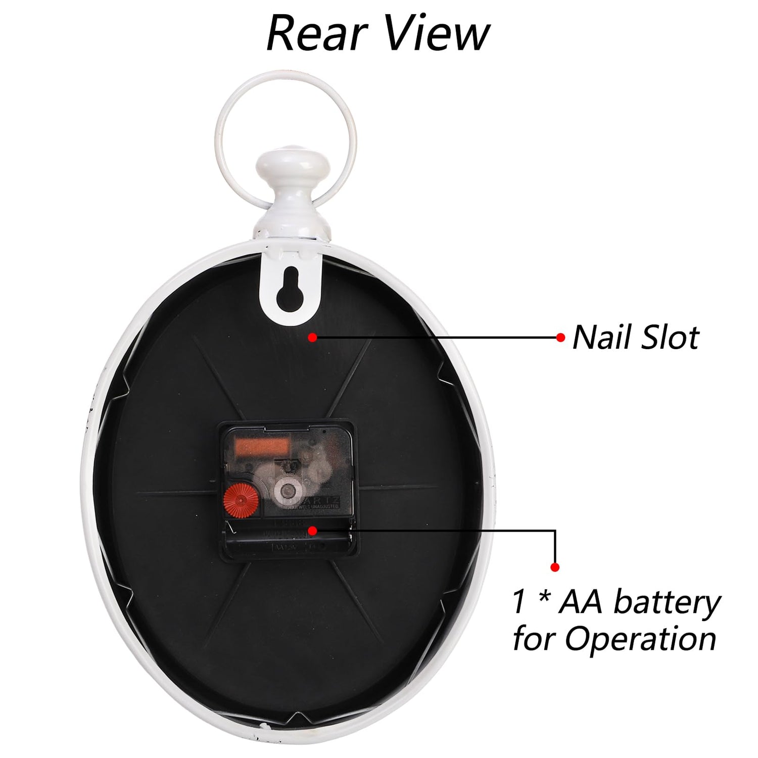 - Size: Our retro white wall clock measures 12'' high(including the top ring), 6.7'' wide and 2'' thick. Clock rests directly against the wall for a seamless look. Exquisite and vintage look gives you a rustic feel