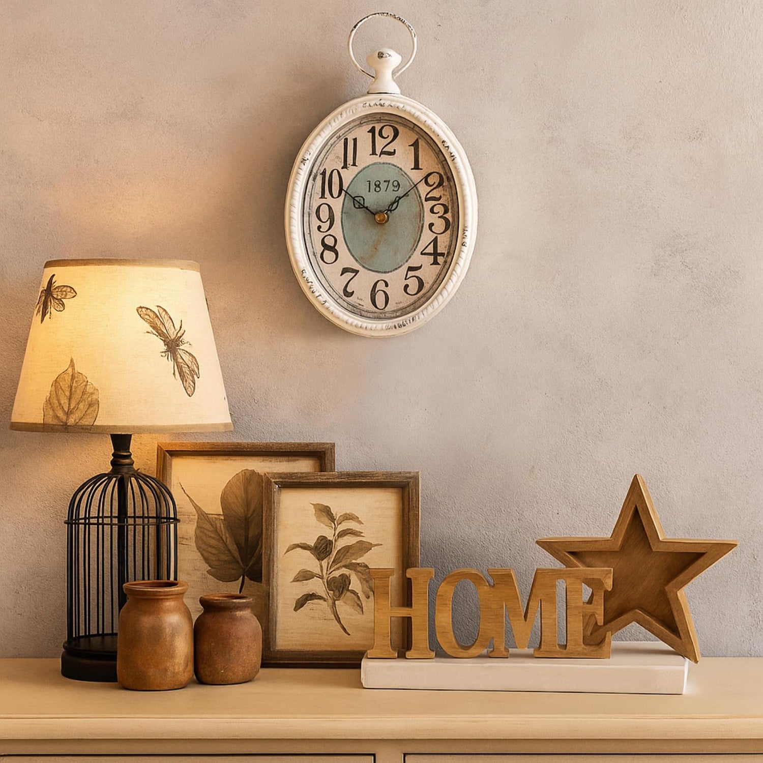 ZENFUN Oval Retro Wall Clock, Rustic Silent Clocks, Elegant Vintage Style, White Antique Design, Battery Operated Non Ticking Wall Clock for Kitchen,Farmhouse, Office(11.2" H x 6.7" W)